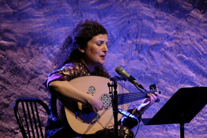 C'est la montagne en tant que lieu sacré qu'ils chantent, lieu privilégié pour la communication avec le divin. Les poèmes sont en persan et les chants sacrés (soufis) sont des louanges à Dieu : musique intérieure et voix douce et envoûtante de Waed Bouhassoun s'accompagnant de son oud qu'elle joue avec un plectre. Elle est parfois rejointe par Ruşan Filiztek, dont la ligne vocale répétitive et incantatoire s'aventure davantage vers l'aigu. Son jeu sur le saz (luth à sept cordes) est virtuose, engageant des joutes sonores animées avec les tambours de Neşet Kutas. Pour terminer la soirée dans une ambiance chaleureuse et participative, Rusan Filiztek et Waed Bouhassoun invitent le public à chanter avec eux le refrain d'une dernière chanson.