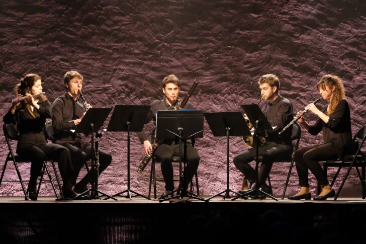 Le programme de la soirée est habilement choisi, entre transcription et œuvre originale. Il débute par l'ouverture du Barbier de Séville, une page connue du grand public, tout en rebond et réparties alertes qui laissent apprécier le brillant des sonorités et la synergie du groupe. Des qualités qui se confirment dans les Six Bagatelles de György Ligeti : énergie du son et acuité des lignes, équilibre des pupitres et raffinement de l'émission, avec cette pointe d'humour ligetienne que les musiciens ne manquent pas de souligner. Le quintette de Beethoven en mib majeur est une transcription de son Octuor à vent de jeunesse, une pièce qui se coule dans le moule classique, bien rodée et finement abordée par le quintette. Noté menuet, le troisième mouvement est un pur scherzo beethovénien, petit théâtre de sons admirablement ciselé par les cinq musiciens : Gladys Avignon, flûtiste et leader fait face à Tatsiana Revina, hautboïste ; entre elles, Victor Guémy (clarinette), Antoine Aboyans-Billiet (basson) et Pierre-Antoine Lalande (cor). Ils sont enthousiastes, talentueux et pleins de ressources !