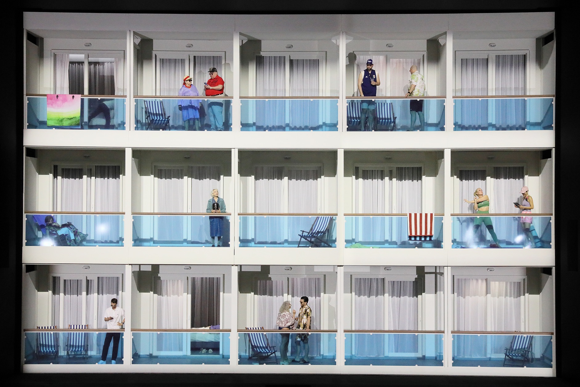 La décision de ne pas montrer les quelques scènes de camp subsistantes de manière directement illustrative, à l'inverse, apparaît pertinent, pour ne pas dire que c'était le seul choix possible. Plutôt que sur l'expérience concentrationnaire elle-même, le spectacle met en avant le travail de la mémoire : une actrice incarne Lisa à la fin de sa vie, plus tourmentée que jamais par le souvenir de sa participation au crime et plus encore par ses tentatives obsessives pour se justifier. La première partie du spectacle se déroule donc sur le bateau de croisière, montrant comme une façade monumentale l'empilement des cabines du bateau, qui s'ouvre par moments pour dévoiler l'intérieur des cabines et surtout l'appartement de Lisa âgée.