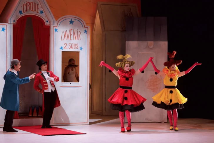 La production réunit trois compagnies : les comédiens des Malins plaisirs, les danseurs baroques de la Compagnie de l'Éventail et les musiciens du Concert Spirituel, sous la direction artistique du metteur en scène Vincent Tavernier. Les mêmes nous avaient offert un spectacle remarqué autour des Amants magnifiques en 2017. Après une première tournée en 2022 et l'annulation des représentations prévues fin 2023 pour des raisons techniques, c'est à Avignon que Le Mariage forcé fait son grand retour. Présentée comme une « comédie-mascarade » dès le début du spectacle, la pièce enchaîne les tableaux loufoques autour du personnage de Sganarelle, roublard et ridicule, joué par l'excellent Laurent Prévôt. Un dispositif scénique à transformations propose un décor minimaliste, qui change à vue à chaque divertissement. La soprano Lucie Edel et le baryton Yannis François endossent plusieurs rôles successifs avec un égal bonheur. Les danseurs transcendent les codes parfaitement maîtrisés de la danse baroque pour oser des anachronismes esthétiques qui participent à la fantaisie générale. Ainsi, lorsqu'arrive un cirque au deuxième divertissement, un Arlequin sur pointes (qui n'existaient pas au XVIIᵉ siècle) vient symboliser un funambule dans une chorégraphie très convaincante. Car il ne s'agit jamais d'une reconstitution servile, mais bien d'une re-création moderne s'appuyant sur une parfaite connaissance des règles de l'époque. Et c'est dans les réjouissances du mariage final que toute la troupe nous offre, avec le « concert espagnol », un divertissement burlesque avec force toréadors, débauche de castagnettes et charivari de casseroles. La dizaine de musiciens du Concert spirituel, menés du premier violon par Solene Guibert et du clavecin par Clément Geoffroy, maîtrise parfaitement la dynamique des danses et offre aux danseurs un tapis sonore plein d'allant. Gageons que Molière serait satisfait de voir l'esprit de son œuvre ainsi ressuscité.