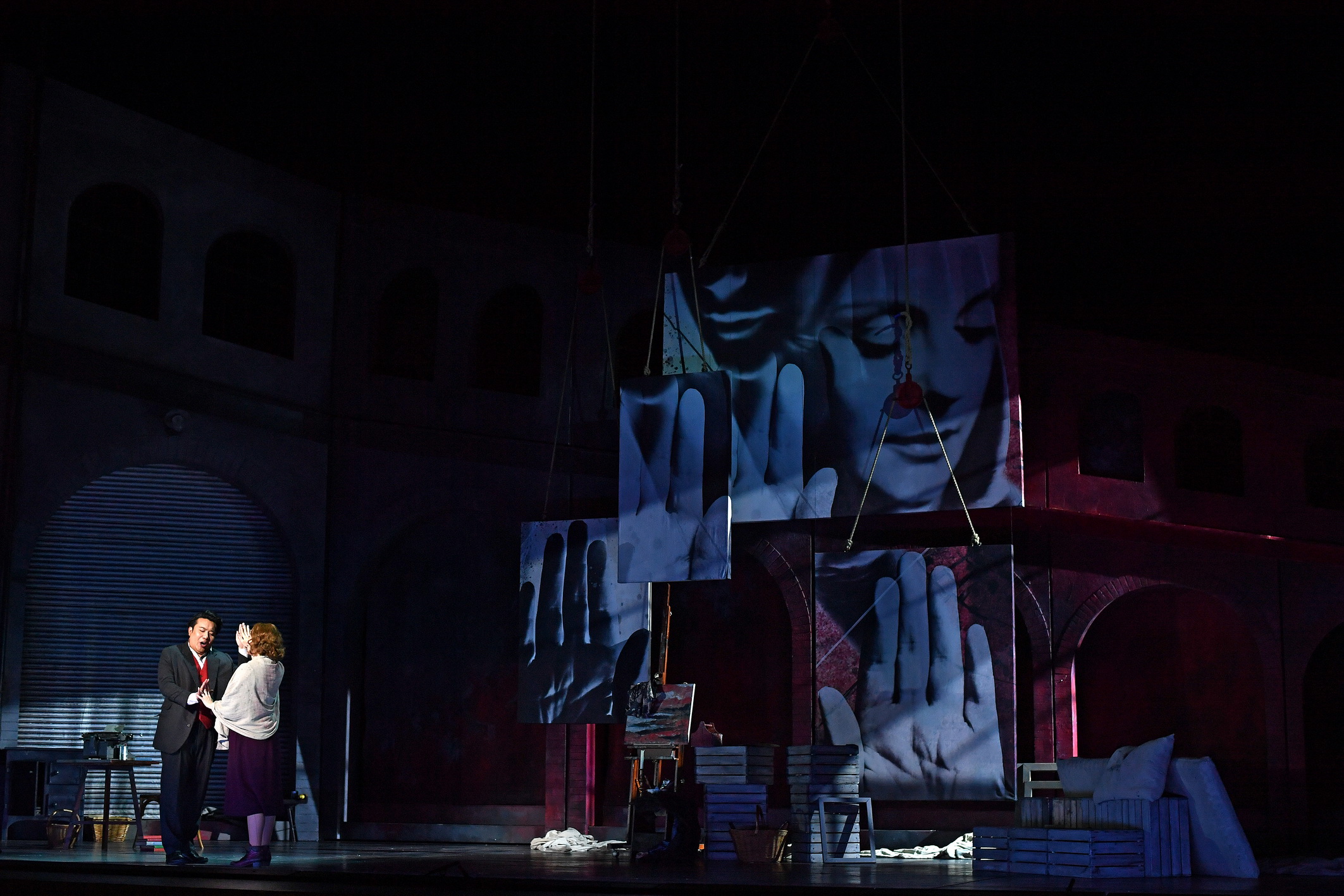 Familier du rôle de Rodolfo, mais aussi des grands espaces (il fut du formidable Rigoletto de Philip Stölzl à Bregenz), le ténor Long Long passe sans encombre la rampe du vaste Corum où sa voix puissante et la longueur de son souffle lui valent de longues acclamations dès la conclusion de Che gelida manina. La soprano Adriana Ferfecka, au timbre plus automnal, lui donne une émouvante réplique. Une Bohème réussie nécessite aussi une Musetta, ce qui peut s'avérer un casse-tête. A Montpellier, où elle avait déjà ébloui en Gilda avec Marie -Eve Signeyrole, il saute aux oreilles que Julia Muzychenko, de surcroît excellente actrice au cours de la transition d'un sexe à l'autre exigée par la mise en scène, ne séduit pas que Marcello. Ce dernier est très élégamment campé par Mikołaj Trąbka, déjà très remarqué in loco en bel Arlekin à Naxos avec Michel Fau. Le toujours étreignant Vecchia zimarra permet à Colline de faire son effet maximum en exploitant le grave caverneux dont la nature a doté Dongho Kim. Le Schaunard de Dominic Sedgwick s'inscrit lui aussi sans histoire dans cette distribution aux solides comprimarii, où tranchent seulement les interventions quelque peu confidentielles de Yannick François dans le doublé Benoît/Alcindoro. L'engagement du Chœur Opéra national Montpellier Occitanie et d'Opéra Junior l'emporte sur les quelques décalages du diabolique Acte II. Passées les pétaradantes, voire dérapantes premières mesures, la direction glorieuse et analytique de Roderick Cox sertit dans l'acoustique cinémascopique de l'Opéra Berlioz, le génie orchestral de ce qui aura été le seul opéra du répertoire d'une saison lyrique exceptionnellement réduite à deux autres titres : La Vie parisienne et Negar.