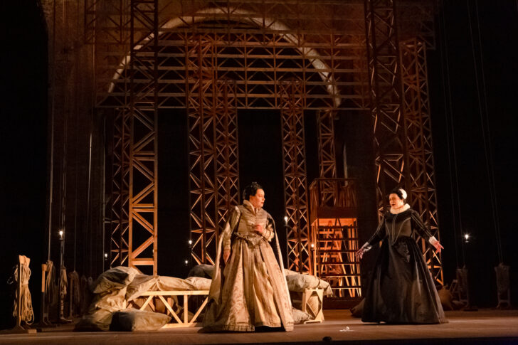 Bouleversante pour sa dernière mort, elle est en plus servie par la production du jeune Daniele Menghini, ancien assistant de Graham Vick, dont il a achevé en 2021 le projet d'Un ballo in maschera au Teatro Regio di Parma, juste après la mort du metteur en scène anglais. Sur un plateau entièrement découvert dès l'entrée en salle, grâce auquel on profite de toute l'arrière-scène de l'une des plus belles et anciennes maisons d'opéra, un homme en T-shirt noir entre d'abord pour jouer quelques mesures fugaces de la Mort d'Isolde sur un piano. Puis il prend la partition et l'amène en fosse : il s'agit d'Omer Meir Wellber, directeur musical des lieux, qui peut alors débuter le Prélude de l'acte I. Pendant cette partie purement symphonique, un autre homme en noir vient uriner dans une bonbonne d'eau à droite de la scène, à côté d'une table qui place l'action dans des coulisses d'opéra, autour d'une proposition de théâtre dans le théâtre dans laquelle le corps de ballet interviendra aussi.