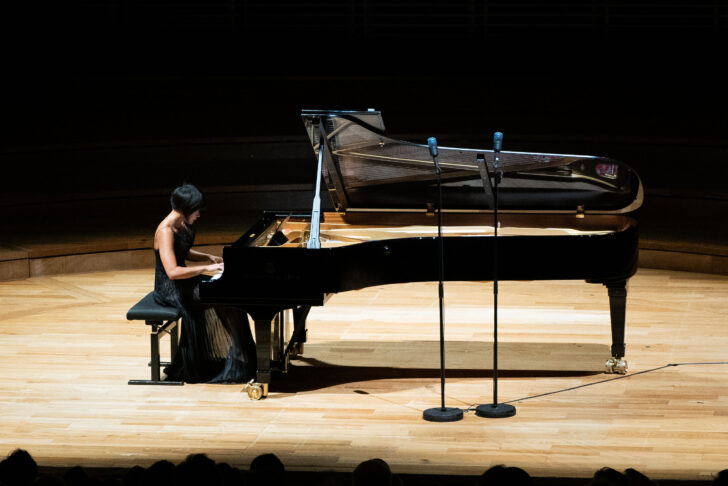 Perturbée par les toux pendant la Sonate de Barber en début de récital, Yuja Wang passe encore à côté des Ballades de Chopin en seconde partie, mais réussit à inverser la tendance en fin de concert avec un show de plus de quarante minutes et dix bis.