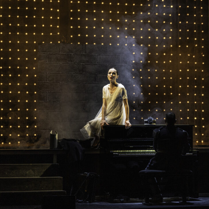 Même en s'adressant aussi aux enfants, Olivier Py reste Olivier Py. On retrouve de nombreux petits cailloux blancs de ses productions passées dans le décor aux myriades d'ampoule de Pierre-André Weitz, sorte de table de maquillage de loge de théâtre géante avec sa perspective de cadres. Le piano droit en contrebas du dispositif ressuscite à la fois le cabaret (Miss Knife n'est pas loin) et le cinéma muet (mais un cinéma muet oxymoriquement déjà parlant, à en juger la logorrhée des interprètes) de l'entre-deux-guerres.