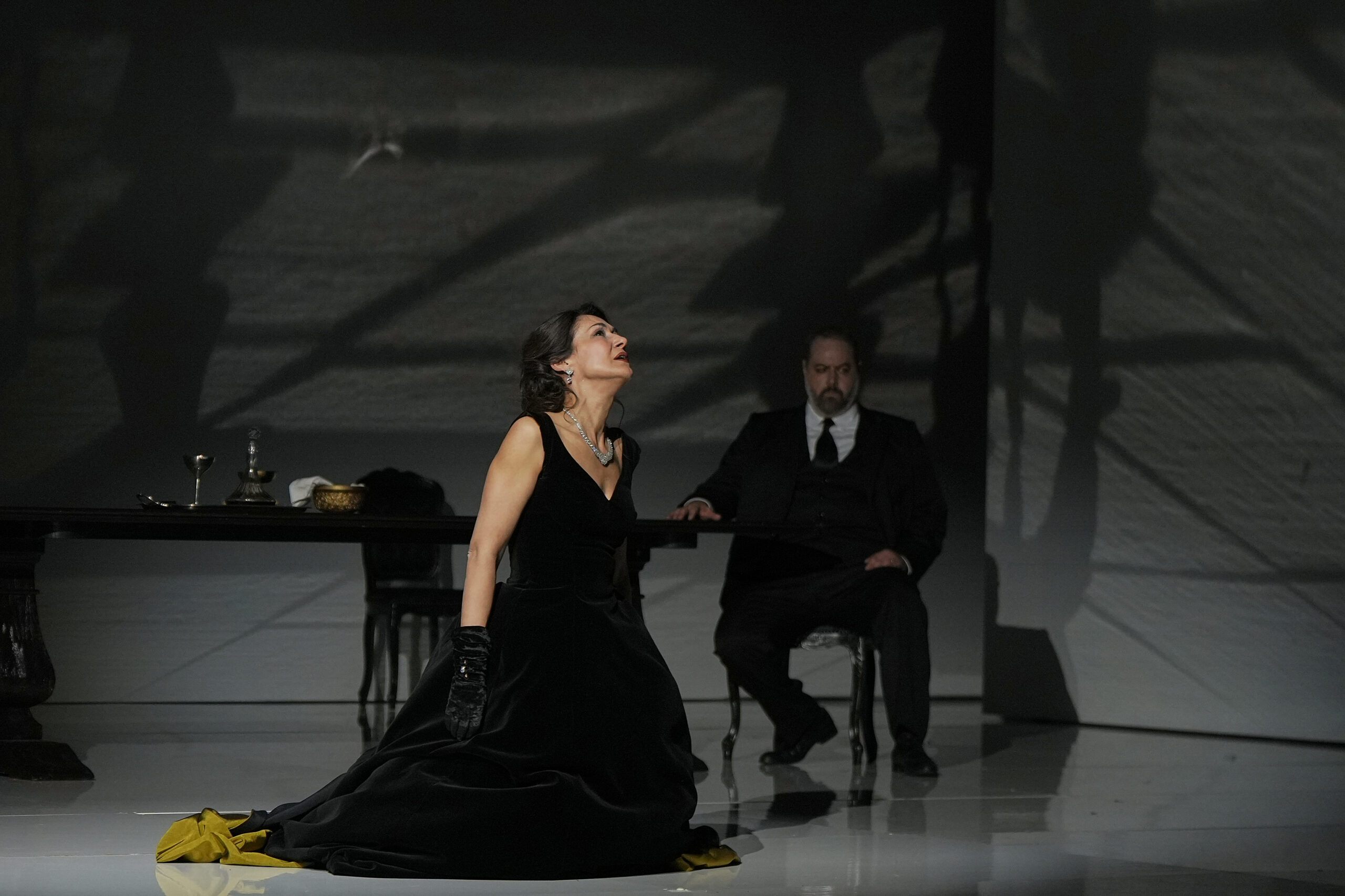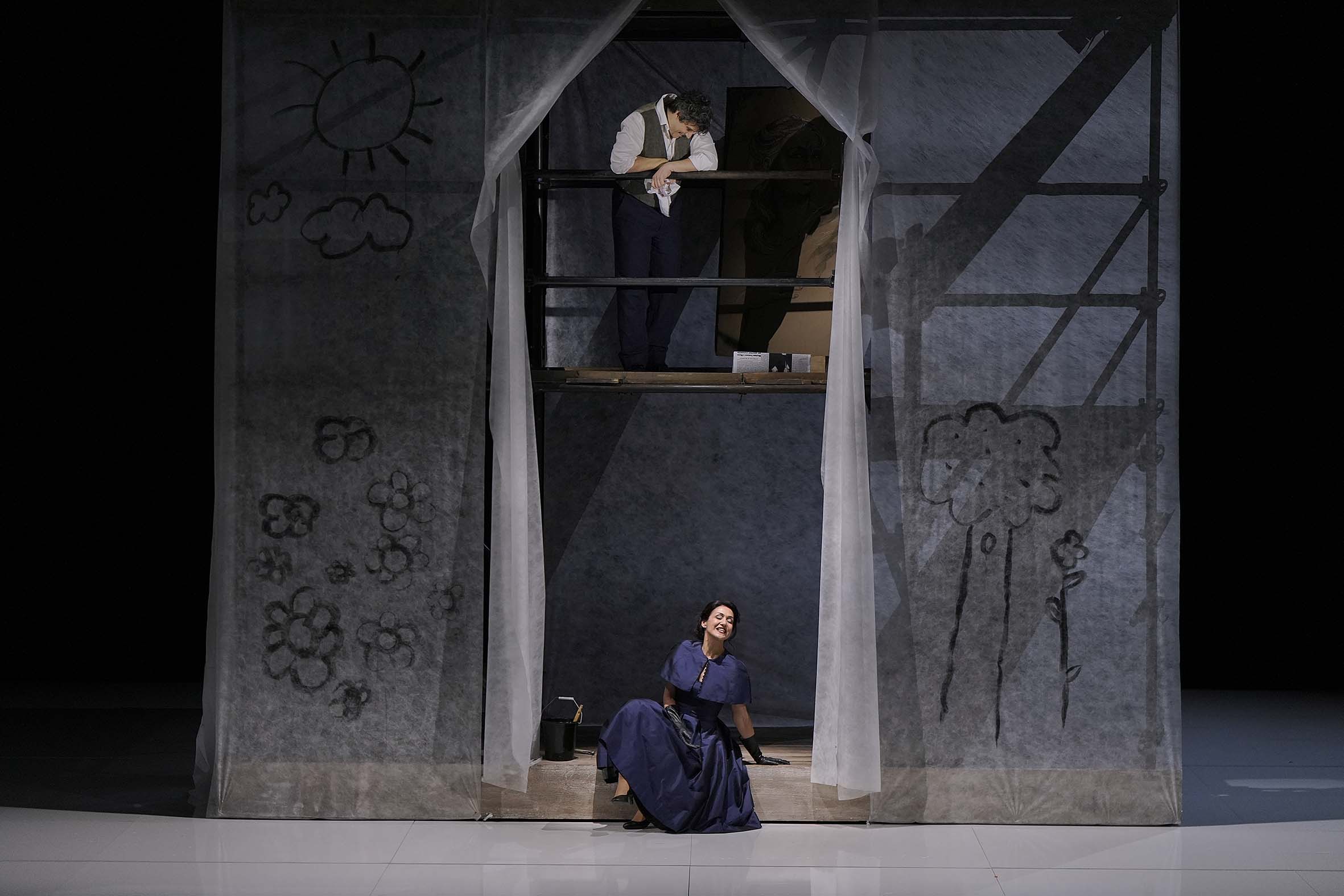 Opéra pour tous, Tosca l'est clairement en s'imposant chaque année comme l'un des titres prédominants du répertoire international. Et si la mise en scène épurée de Silvia Paoli -déjà décrite en détail en 2022 à Nancy– peut parfois faire douter quant à la pertinence de certaines images, à l'instar d'une scène de crucifixion en décalage avec le Te Deum magnifiquement chanté par le chœur en fin d'acte I, elle garde une vraie lisibilité, sans jamais surcharger l'action. L'idée de faire abattre Mario Cavaradossi dans le dos par le lâche Spoletta est plutôt adaptée à la notion de trahison de Scarpia, même si l'unique coup de pistolet – avant celui par lequel Tosca se suicidera plutôt que de se jeter d'une tour – donne moins de force au drame que certaines salves imposantes dans d'autres mises en scènes.