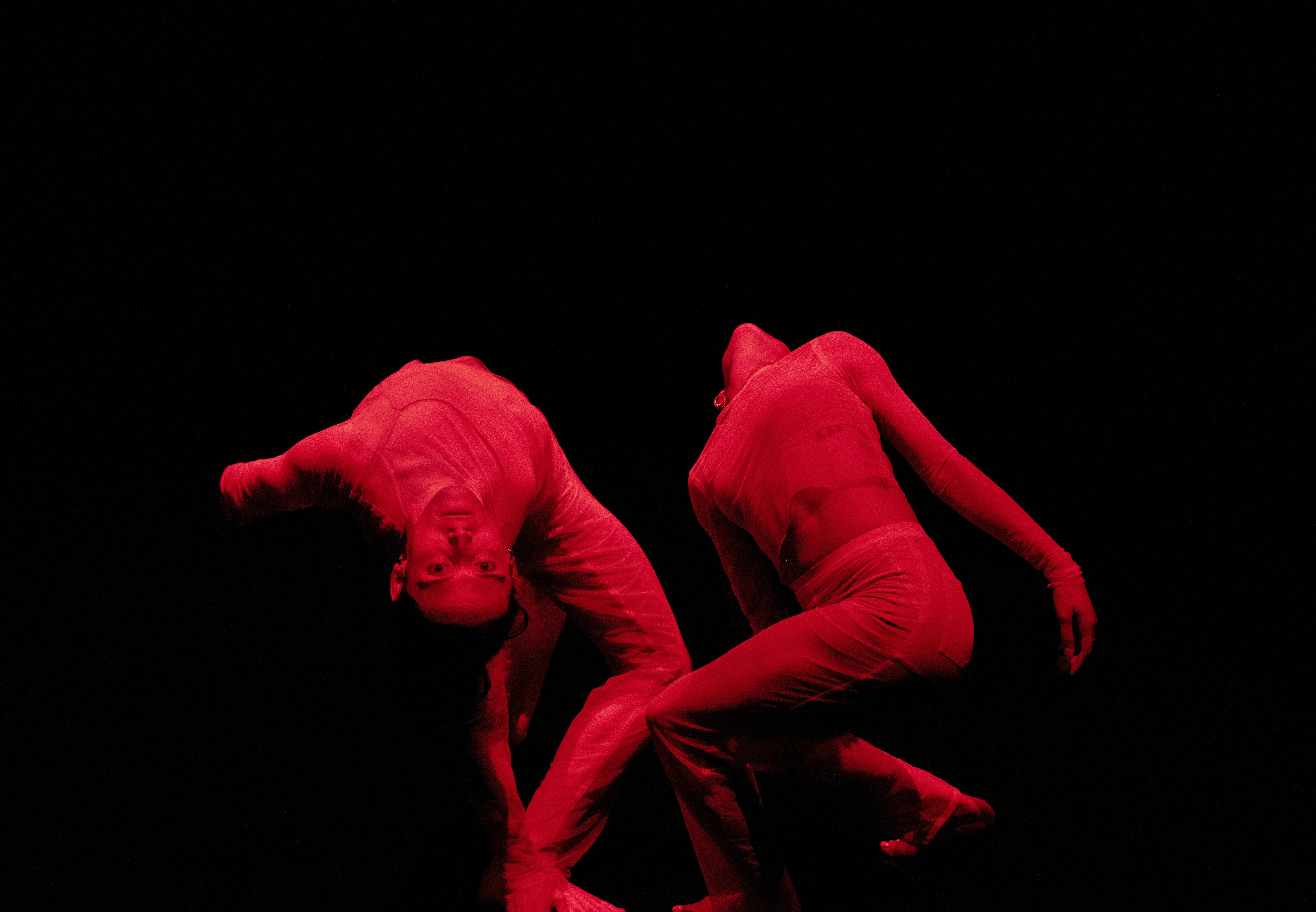Plongés tour à tour dans une lumière rouge, puis bleue, les danseurs figurent dans cette scénographie en mouvement comme des êtres surnaturels happés par des puissances obscures. La danse se fait alors plus intérieure, organique, sensuelle, au sol ou dans des enchevêtrements de corps. La troisième partie, enfin, est plus lumineuse et limpide. Les danseurs vêtus de blanc ont des allures d'anges et apparaissent ou disparaissent dans une chorégraphie apaisée.