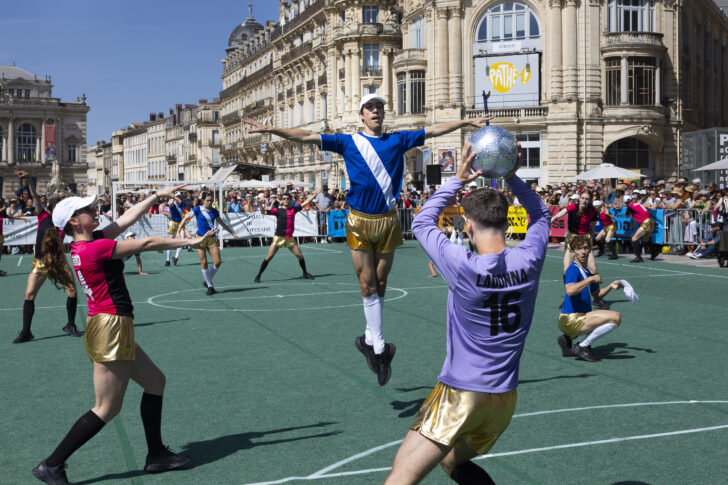 Règles de la partie : ne jamais courir mais évoluer en dansant. Cela donne quelques facilités répétées (développés à la seconde, grands jetés) que l'on retrouve dans les films de l'époque, Flashdance ou Saturday night fever et des allusions au répertoire classique. Il y a d'innombrables traits d'humour aussi, avec un chauffeur de salle, des notations et des tirs au but avec des danseurs faisant monter l'ambiance. C'est sympathique, cela crée une bonne animation sur la place de la Comédie, mais comme le faisait remarquer un ado spectateur à ses copains : « Tu crois que c'est une vraie choré ? »