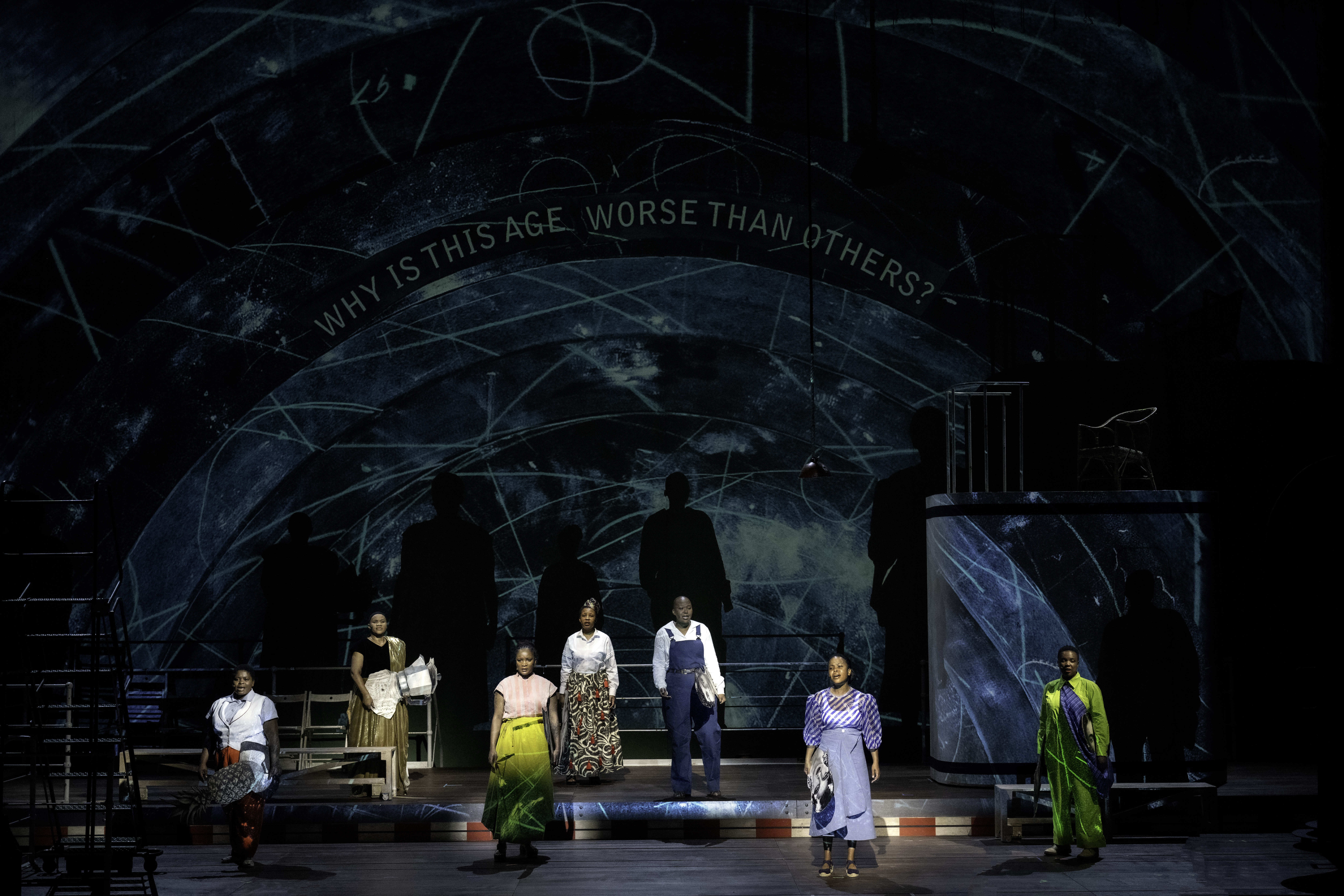 Mais revenons à la partition de cette pièce poétique, dont la partie musicale est assurée par un chœur de sept femmes qui chantent dans l'une des langues zoulou. Elles sont accompagnées par quelques instrumentistes : violoncelle, accordéon, percussion et piano, qui forment une sorte de basse continue. Le chœur des femmes assure la ligne mélodique de ce spectacle, dont les parties théâtrales sont plus importantes que dans les deux derniers opus du maître sud-africain, The Head & The Load (2018) et Waiting for the Sibyl (2019). Son art de la mise en scène est toujours aussi foisonnant et utilise images fixes et animées, film, masques, costumes et décor, qui se croisent sur différents plans pour former une scénographie inventive et mouvante.