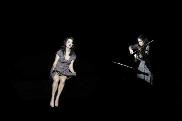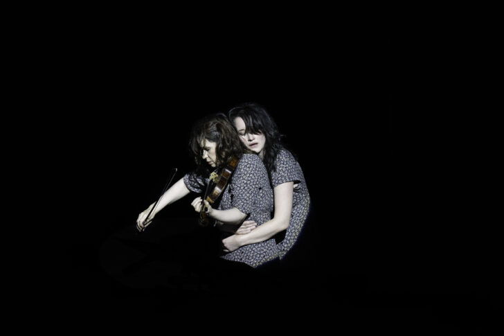 Même démarche pour les quarante fragments glanés par György Kurtag dans le journal intime réputé le plus passionnant qui soit : celui de Kafka. Quarante « cartes postales de l'âme », dixit Kosky, aux durées inégales (vingt secondes à sept minutes), datées de 1987, que le metteur en scène fait naître de l'obscurité. Collection des pensées fugaces qui surgissent à tout moments dans un cerveau humain, Kafka-Fragmente, introduit comme les Eight Songs par une dynamique horlogère censée décrire la symbolique de la marche, est écrit pour une soprano et une violoniste. L'une et l'autre (Anna Prohaska et Patricia Kopatchinskaja) arrivent en marchant du fond du plateau. Jumelles par leur robe, elles le seront aussi par le propos (la seconde, sorte de psy des états d'âme de la première, indéfectible compagne de route musicale, idéale de technicité) avant de finir enlacées au finale dans le halo d'un ultime regard de lumière.