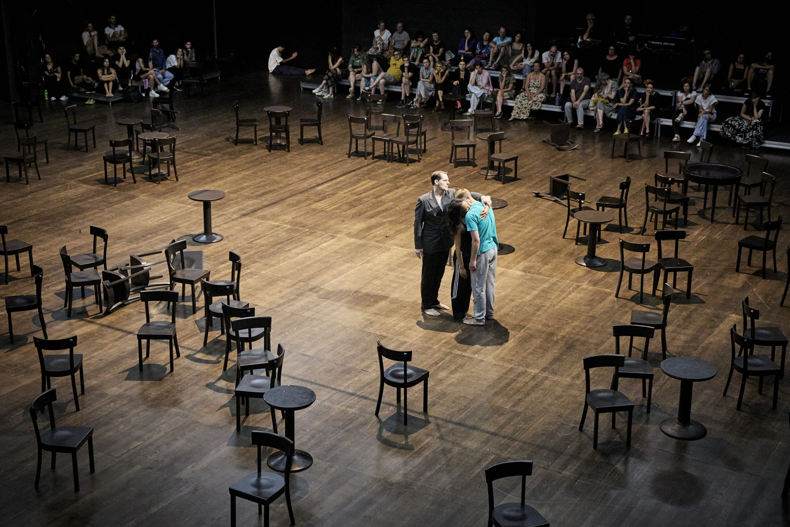Entre chaque représentation de Café Müller, qui dure 45 minutes, avec des distributions différentes, des interludes permettent à chaque danseur de raconter ses souvenirs de rencontre avec Pina, réels ou virtuels, ou d'apprentissage de l'un des rôles de la pièce. Dans leur récit, chaque rôle est identifié par le nom de celui, ou celle, qui le créa en 1978 : celui de Jan, celui de Pina, celui de Rolf, celui de Malou, celui de Dominique, celui de Meryl. Ces témoignages émouvants, voire poignants, sont mis en espace dans la scénographie brute de Café Müller, ces tables et ces chaises encombrant le plateau de plancher sombre, autour duquel les spectateurs s'installent, soit au ras du plateau, soit au lointain, ou bien encore en surplomb depuis les gradins. Une énorme différence par rapport à la reprise à La Villette à Paris il y a un an, où l'accueil des spectateurs était resté froid.