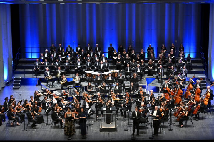 Le lendemain, l'ensemble en présence possède à peu près le même effectif que celui de la veille pour la symphonie et il est encore étonnamment agencé avec les contrebasses tout à droite, dans une nomenclature pourtant assez rare aujourd'hui. Cependant, il ne s'agît plus du Philharmonique, mais de l'Orchestre National Montpellier Occitanie, dirigé par la jeune cheffe Clelia Cafiero (récemment en fosse dans Tosca à Rennes). Le Stabat Mater de Rossini constitue l'unique pièce du programme, ainsi les Chœurs de l'Opéra National de Montpellier associés à ceux du Capitole entrent directement en scène après l'orchestre, rejoints par le quatuor vocal et la cheffe.