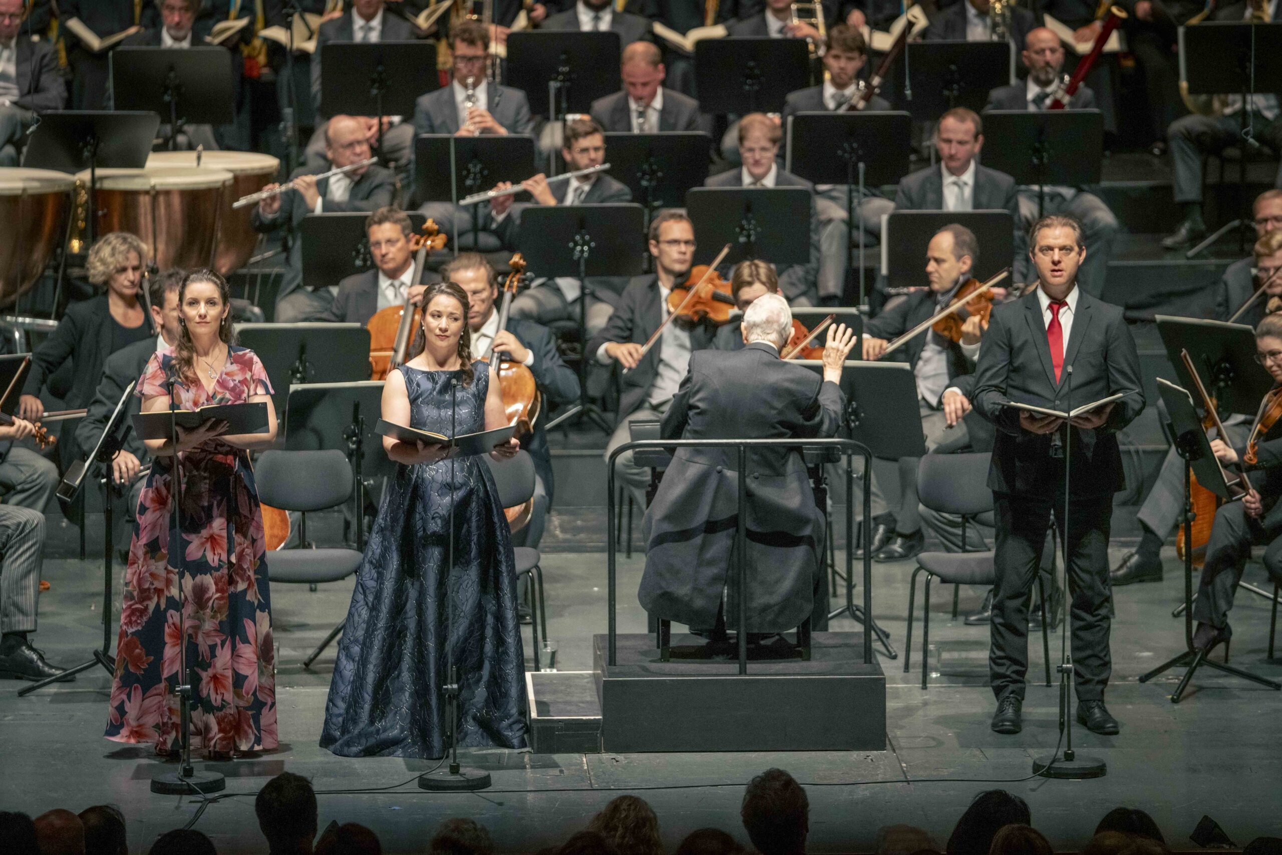 Le côté vocal de cette matinée est moins satisfaisant, à commencer par le chœur non professionnel du Wiener Singverein, dont l'effectif imposant est sans doute une nécessité, mais au détriment des couleurs et des textures qui manquent décidément de plasticité, et les deux sopranos solistes Christina Landshamer et Elsa Benoit manquent un peu de relief, notamment en comparaison avec le ténor Tilman Lichdi, qui avec sa parfaite voix d'Évangéliste sait donner toute leur force aux mots, par exemple dans l'épisode du berger qui attend l'aube (6e mouvement) où Blomstedt donne toute sa force à l'inquiétude de l'humanité oppressée par l'obscurité. Mais ces quelques limites vocales ne font rien à l'enthousiasme du public, tant il y a des merveilles à découvrir à l'orchestre : après un tel concert, une standing ovation est à Salzbourg comme ailleurs une simple question de politesse, mais on est heureux d'y participer tant elle récompense non pas le souvenir d'une carrière prestigieuse, mais la musique vivante et émouvante.