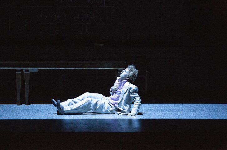 La mise en scène de Krzysztof Warlikowski est avec l'incarnation du rôle-titre la grande satisfaction de la soirée. Sans doute a-t-il déjà été plus loin dans l'interprétation des données du drame, par exemple cette Elektra de 2020 déjà citée sur la même scène, mais il offre une lecture claire et émouvante, donnant comme il sait le faire une consistance aux figures féminines centrales, grâce à une direction d'acteurs beaucoup plus aboutie que pour son récent Grand Macabre de Munich. Le décor de Małgorzata Szczęśniak, étendu tout en longueur sur l'avant de la très large scène de la Felsenreitschule, offre des espaces de jeu que Warlikowski sait exploiter de manière constamment réinventée, pour créer une mobilité qui ne se limite pas à des allers-retours entre les zones dessinées par le mobilier. La limite du spectacle, qui ne parvient pas à faire oublier les faiblesses de l'œuvre, tient surtout dans la figure de Rogojine, le double maléfique du prince : non seulement Vladislav Sulimsky se contente de chanter sagement ses notes sans chercher à donner de l'épaisseur à son personnage, mais encore Warlikowski ne semble pas avoir autant travaillé sur son personnage que sur ceux du prince et de ses deux tentations féminines.