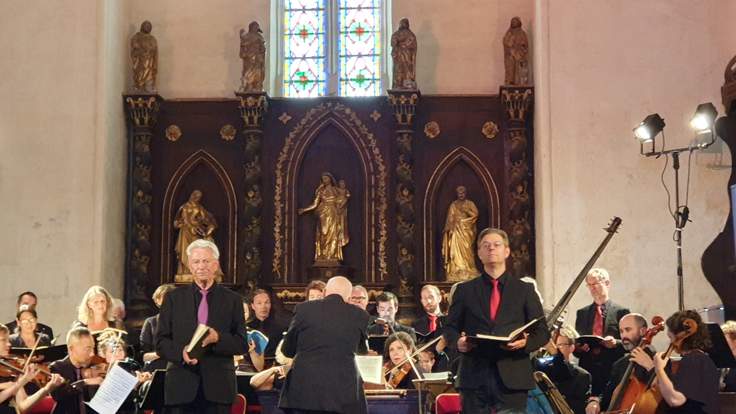 Il est émouvant d'entendre la Passion selon Saint Jean par un ensemble néerlandais de classe internationale, dans cette église édifiée du XIIe au XVIe siècle, qui a subi les outrages des guerres de religion avant d'être ornée de plusieurs autels baroques, puis dont le monumental clocher a servi il y a exactement 80 ans de point haut d'où des résistants ont harcelé les troupes nazies battant en retraite, lesquelles assassinèrent en représailles 35 otages innocents au matin du 20 août 1944. Ton Koopman a donné cette même Passion en 2011 au Théâtre des Champs-Élysées avec les mêmes musiciens – hormis l'alto et la soprano – et en suivant le même parti interprétatif (un chœur d'une vingtaine de chanteurs et autant de musiciens d'orchestre, rôles secondaires tenus par les membres du chœur). Mais l'impact émotionnel et spirituel de cette musique protestante dans la résonance de ces voûtes témoins de tant de prières de pèlerins et de guerres, est bien supérieur à l'élégance mondaine de la salle parisienne.