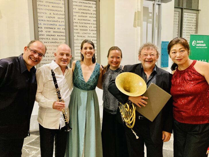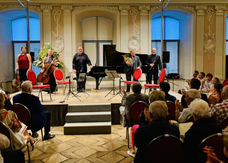 10-VIII-2024 : Franz Schreker (1878-1934) : Der Wind, pour violon, violoncelle, cor, clarinette et piano ; Cart Frühling (1868-1937) : trio en la mineur op. 40 ; Franz Schubert (1797-1828) : Der Hirt auf dem Felsen op. 129, D.965 ; Johannes Brahms (1833-1897) : trio pour violon, cor et piano en mi bémol majeur op. 40. Gwendoline Blondeel, soprano ; Ensemble Kheops : Ayako Tanaka, violon ; Marie Hallynck, violoncelle ; Ronald van Spaendonck, clarinette ; Jean-Pierre Dassonville, cor ; Muhiddin Dürrüoğlu, piano