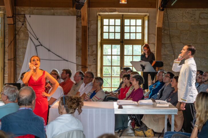 17h : Pablo Andrés (né en 1995), Fran Barajas (né en 1995), Xinglan Deng (née en 2000), Sylvain Devaux (né en 1988), Manuela Guerra (née en 1996), Nathalie Laguens (née en 1993), Bensigu Önder (née en 1995), Fernando Strasnoy (né en 1990) : Butterfly Room Service : Opéra collaboratif en 3 actes et huit scènes de l’Académie Voix Nouvelles : livret original d’Antoine Gindt, en collaboration avec Cecilia Franco ; Joséphine Kirch, mise en scène ; Fanny Brouste, costumes ; Xavi Ambrois, Alix Capossela, Martin Huot, scénographes. Maud Bessard-Morandas, Lila Dufy, sopranos, Sakura ; Guillaume Ribler, Gabriel-Ange Brusson, contre-ténors, Paruparo (un jeune employé du room service) ; Julien Ségol, basse, Takao (le mari de Sakura). ; Ensemble Linea ; direction Jean-Philippe Wurtz et Laure Deval.