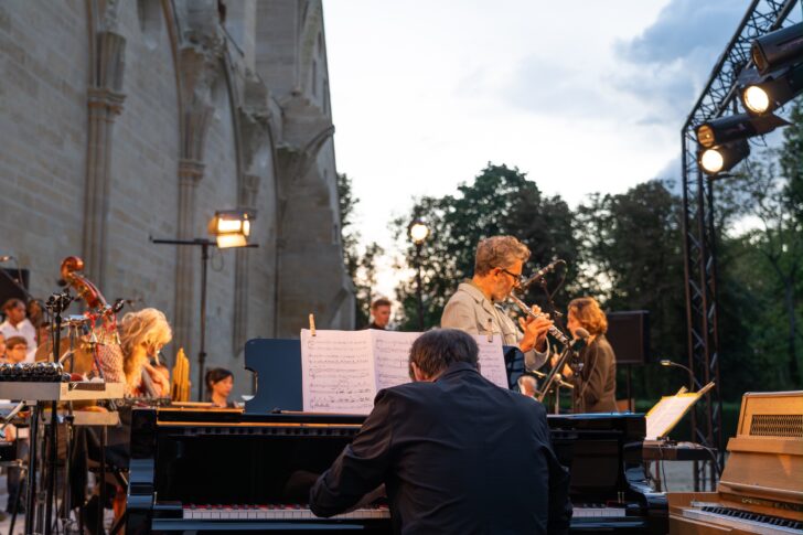 20h : Le Chant de la Terre – Pour Mahler : Joce Mienniel, direction artistique, composition, flûtes, guimbarde électronique ; texte d’Olivier Cadiot ; Jean-Christophe Quenon, récitant ; Johanna Vargas, soprano ; ; Roberto Negro, piano, piano préparé, célesta, synthétiseur ; Simon Drappier, contrebasse, synthétiseur basse monophonique ; Sylvain Lemêtre, percussions, bols, métaux, gongs ; Hélène Maréchaux et Cécile Roubin, violon ; Oriane Pocard Kieny, alto ; Justine Metral, violoncelle ; Shao-Huan Hung, sheng ; Yaping Wang, yangqin ; chœur d’enfants de l’école Paul Eluard de Persan ; La Chanterie du Conservatoire à Rayonnement Communal de Persan ; cheffes de chœur Emmanuelle Gal et Marie-Christine Laviron ; direction Fiona Monbet.