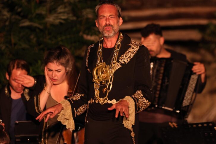 L'humour n'étant pas tout, La Flûte enchantée doit bien sûr reposer sur un orchestre qui a fort à faire (celui de ce soir est de bout en bout remarquable) et de chanteurs à toute épreuve. C'est le cas avec la Pamina assez corsée d'Aurore Bucher, presque une amazone, avec le reptilien Papageno d'Arthur Goudal, la Papagena délicieuse et la deuxième Dame de Julia Szproch, le Monostatos génialement repoussant et l'« hénaurme » troisième Dame de Christophe Crapez. Cette Flûte s'honore en outre d'une vraie Reine de la Nuit : Charlotte Bozzi (également première dame) dont les coloratures diaprées résonnent à ravir dans l'air encore chaud de l'été. Anna Swieton, Mathilde Berthier (violons) et Pauline Le Toullec (alto) sont de merveilleux enfants, ceux du village, inclus par la production, étant utilisés comme porte-ballons déambulatoires puis animaux sauvages d'un quizz mené là encore avec un humour bien décalé par le délicat Tamino de Benjamin Alunni. Toutes et tous sont mis à contribution pour quelques bribes chorales, dans l'attente que l'été 2025 ne vienne enrichir cette Flûte enchantée, c'est devenu l'usage dans ces opéras promenés sur deux années, d'un véritable choeur.