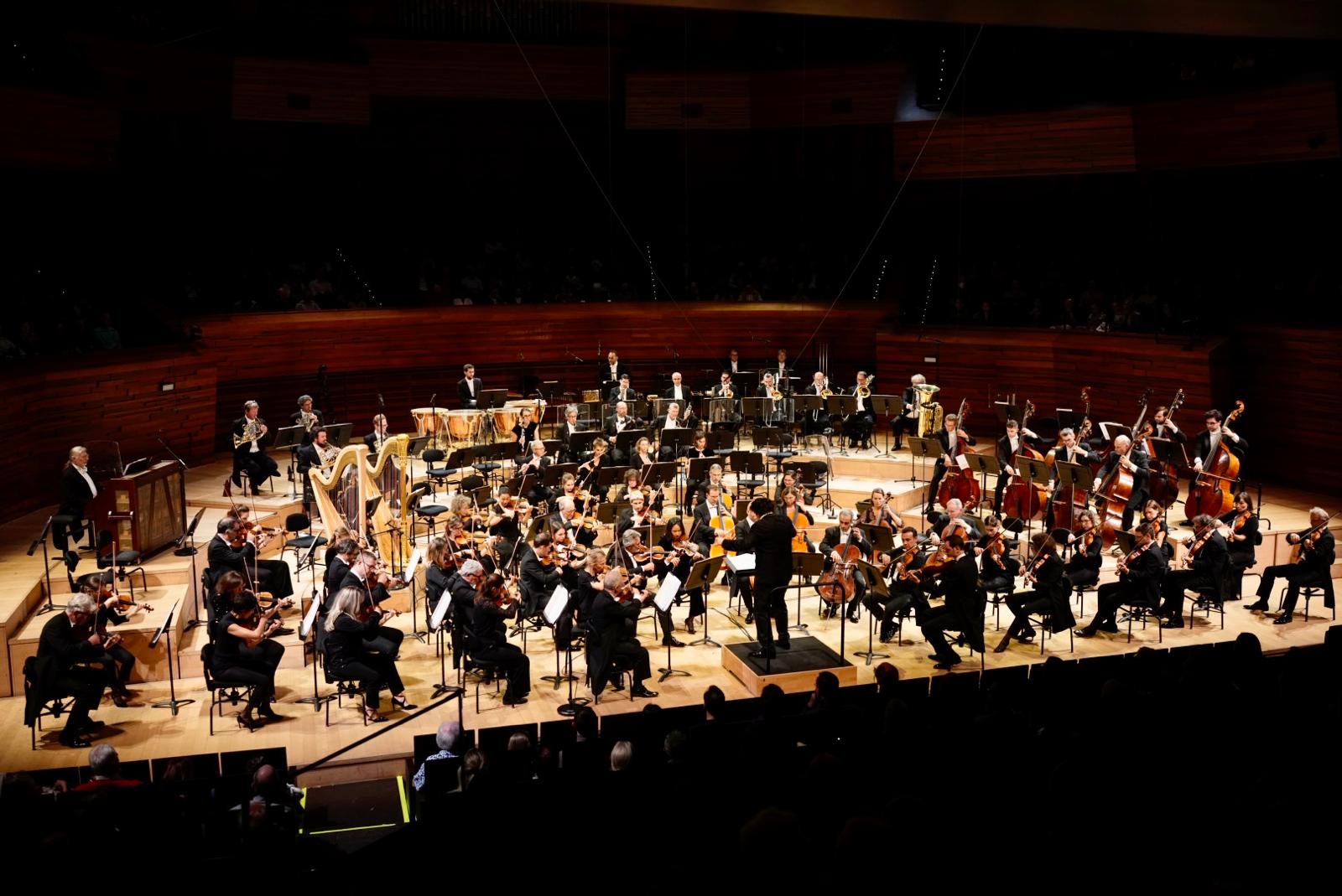 Assise au premier rang invités, la violoniste peut profiter d'une seconde partie dans laquelle la Symphonie n°2 d'Elsa Barraine est une intéressante curiosité. Très rarement interprétée, cette œuvre peut se réécouter grâce au replay du concert sur le site de France Musique, ou sur les plateformes de streaming dans une version de 1952 par Jean Martinon, avec l'ancêtre du National actuel. D'à peine vingt minutes et en trois mouvements, elle rappelle par ses ruptures la musique d'un Honneger, du dernier Stravinsky ou d'un Chostakovich dont la compositrice (gagnante du Grand Prix de Rome en 1929) venait d'entendre quelques mois auparavant la Symphonie n°5. Sous-titrée « Voïna » (« guerre » en russe), cette partition de 1938 évoque les clairs-obscurs relatifs à la période, extrêmement bien mis en avant par l'Orchestre national de France et son directeur musical. Cette fois, aucun problème de mise en place pour une rythmique parfaite, en accord notamment avec la justesse de la caisse claire, qui rappelle à la Marche Funèbre médiane les lentos des symphonies passées et à venir du compositeur russe précité. Moins bien agencé et peut-être trop fracturé, le court Finale casse quelque peu l'effet des deux mouvements précédents, sans remettre en cause la qualité de l'interprétation.