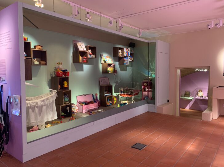 Le bébé a grandi. Le jeune enfant veut à présent imiter l'adulte. Dans la deuxième salle sont présentés des jouets plus complexes, adaptés à la croissance et l'éveil de l'enfant. Du moulin à musique inventé par Auguste l'Épée au milieu du dix-neuvième siècle, des vieux livres à soufflets à ceux actuels munis de fichiers mp3 ou QR codes, tout le progrès technologique se retrouve ici dans le jouet, reflet de son époque, version junior de l'objet créé pour l'adulte. Radios, télés, ancien phonographe, mange-disques aux couleurs pimpantes, livres-CD… L'enfant d'aujourd'hui qui n'a pas connu le tourne-disque ni le radio-cassettes découvre ici les jouets de ses parents et de ses grands-parents mais aussi leurs idoles télévisuelles, les génériques de leurs émissions favorites. Les adultes quant à eux, qu'ils soient trentenaires ou sexagénaires, y renouent avec leur enfance non sans un brin d'émotion, retrouvant Babar, le Manège enchanté, Casimir…et la poupée Bella qui savait parler au début des années 70.