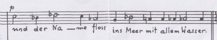 2. Le motif de la croix : La courbe sinueuse de demi-tons, issue des lamentations dans la musique baroque, avant tout chez Bach (voir aussi l'anagramme B-A-C-H et le thème de L'Art de la Fugue), trouve ici son équivalent dans de nombreux récitatifs, comme par exemple là où Grigoris charge Maniolios d'assumer le rôle du Christ et de porter la croix, mais de façon plus expressive encore dans la plainte de Despinio, la femme exténuée qui s'effondre en arrivant avec les réfugiés :