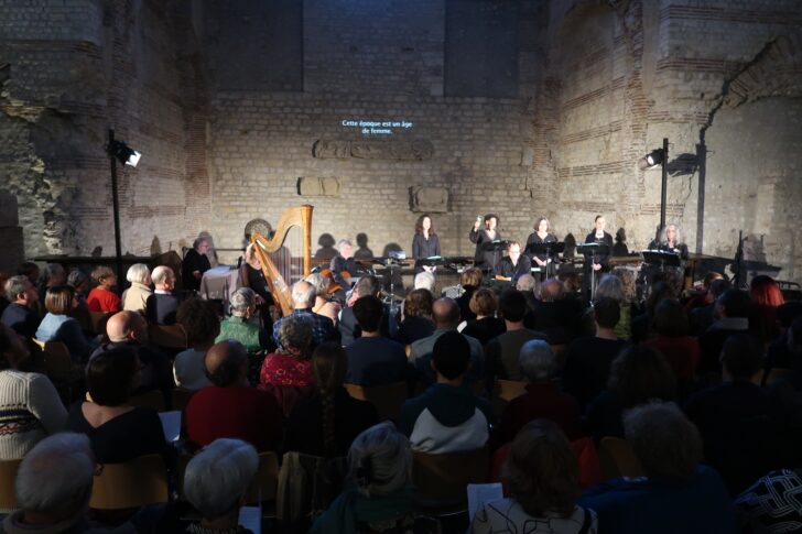Les gigantesques murs de pierre du Musée de Cluny accueillent l'ensemble vocal féminin Discantus et sa fondatrice Brigitte Lesne ainsi que le Trio Polycordes lors d'une soirée poésie-musique conçue en binôme par le compositeur Gualtiero Dazzi et la librettiste et dramaturge Elisabeth Kaess.