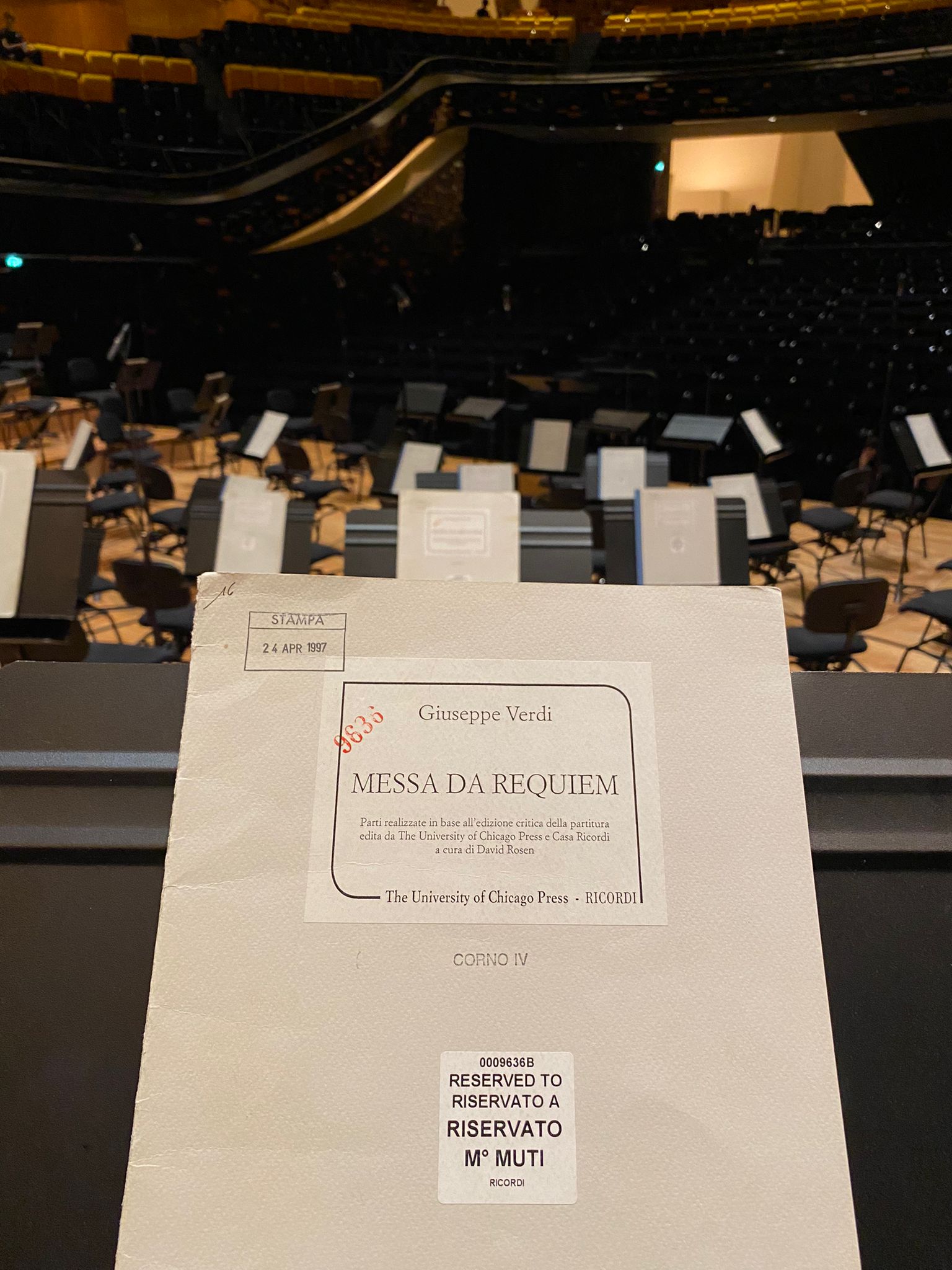 A quatre-vingt-trois ans, le grand chef porte toujours beau, droit comme un i, en frac comme les membres masculins de l'orchestre, et dirige debout le vaste chef d'œuvre. Voir diriger Riccardo Muti est un peu comme prendre une leçon d'orchestre : la battue de la main droite a la clarté de l'évidence et une lisibilité parfaite tandis que la main gauche suggère ou impose les nuances avec une expressivité saisissante. Et l'on imagine (puisque le chœur a pris place sur les gradins au dessus de l'orchestre, sans spectateurs face au chef) sans peine le regard du maestro auquel rien n'échappe en voyant comment l'orchestre a les yeux rivés sur lui.