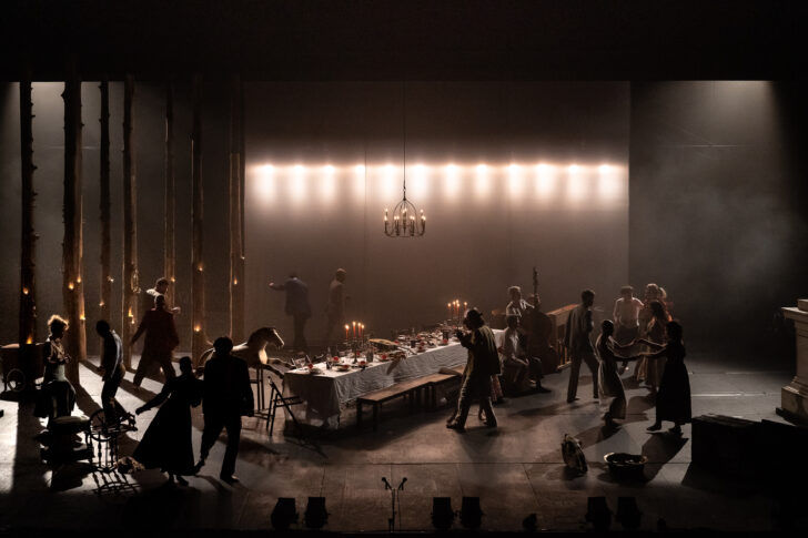 Les étonnants polyartistes, musiciens, chanteurs, acteurs, danseurs de La Tempête nous emmènent dans un tourbillon de tableaux saisissants, un radeau de la Méduse imaginaire, une forêt qui s'éclaire, de bouleversantes funérailles suivies d'un repas de noces tout droit sortis d'un film d'Emir Kusturica.