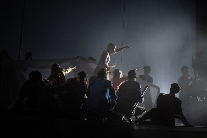 Les étonnants polyartistes, musiciens, chanteurs, acteurs, danseurs de La Tempête nous emmènent dans un tourbillon de tableaux saisissants, un radeau de la Méduse imaginaire, une forêt qui s'éclaire, de bouleversantes funérailles suivies d'un repas de noces tout droit sortis d'un film d'Emir Kusturica.