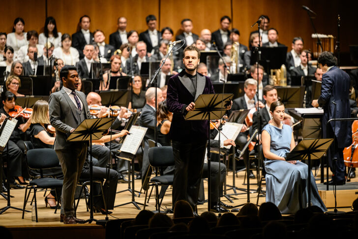 Le chef Kazuki Yamada, à la tête de l'OPMC et du Chœur philharmonique de Tokyo de tournée en Europe, dont on salue les interventions en tous points remarquables, rend justice, par la finesse de sa direction et sa belle vision d'ensemble, à toutes les particularités de la partition. Parmi les six solistes, trois sont des habitués des productions du Palazzetto Bru Zane. Jennifer Holloway qui nous avait impressionnés dans le rôle de Hulda de César Franck, incarne avec le même engagement physique et vocal le rôle de l'aïeule Nunciata, exprimant sa fureur vengeresse avec une énergie farouche. Hélène Carpentier, (virevoltante Sophie dans Werther) est remarquable dans ses souples et langoureuses vocalises au début de l'acte III, et prête la plastique de sa voix et le belle présence de son timbre à Margarita. Matthieu Lécroart (remarqué dans les productions précitées) tient sa juste place en porcher Bursica, sa voix au timbre mat allant comme un gant à l'humilité de son personnage. Quant aux nouveaux arrivés, le ténor Julien Henric tient sans excès expressif le rôle de Tebaldo par la projection naturelle de sa voix et l'éclat lumineux de son timbre, le baryton Michael Arivony à la diction d'une clarté exemplaire et au timbre somptueusement chaleureux donne une noble tenue au personnage de l'ermite Raphaël. Gaëlle Arquez que l'on avait saluée dans le rôle titre de Carmen ces dernières saisons, met toute l'étendue de sa sensibilité au service de Vanina qu'elle incarne de sa voix de mezzo-soprano au timbre riche et profond.
