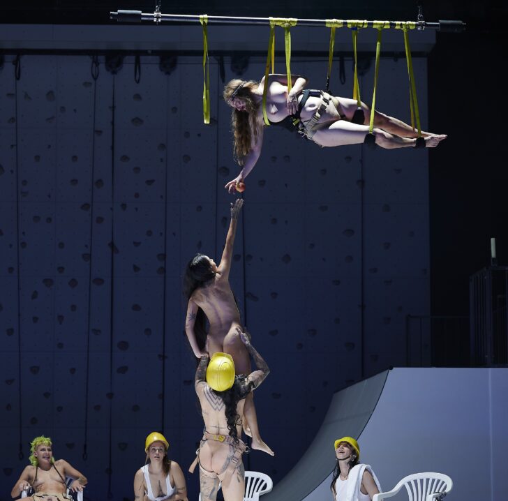 La première chose qu'on voit dans le nouveau spectacle de la chorégraphe et performeuse autrichienne Florentina Holzinger, c'est l'argent : en des temps où tant d'institutions culturelles des plus méritantes sont fragilisées par leurs finances, elle a visiblement eu pour ce spectacle un budget à peu près illimité : des performeuses à foison, des décors, des artifices scéniques, un orchestre en fosse et un chœur sur scène, des partitions écrites ou arrangées pour elle – la liste des financeurs est longue et comme on l'imagine internationale. La production du spectacle, elle, est assurée par le théâtre de Schwerin, dans le Nord de l'Allemagne, où il a été créé, et par l'Opéra de Stuttgart : comme pour montrer qu'elle n'est pas dupe, elle ne manque pas d'aligner les clichés sur les maisons d'opéra : il est bien facile de décrire le monde de l'opéra comme fermé et rétrograde quand on y trouve de l'argent et une tribune. Là où est l'argent est le pouvoir : choyée depuis le début de sa carrière par les institutions les plus assises, Florentina Holzinger incarne l'art officiel d'aujourd'hui.