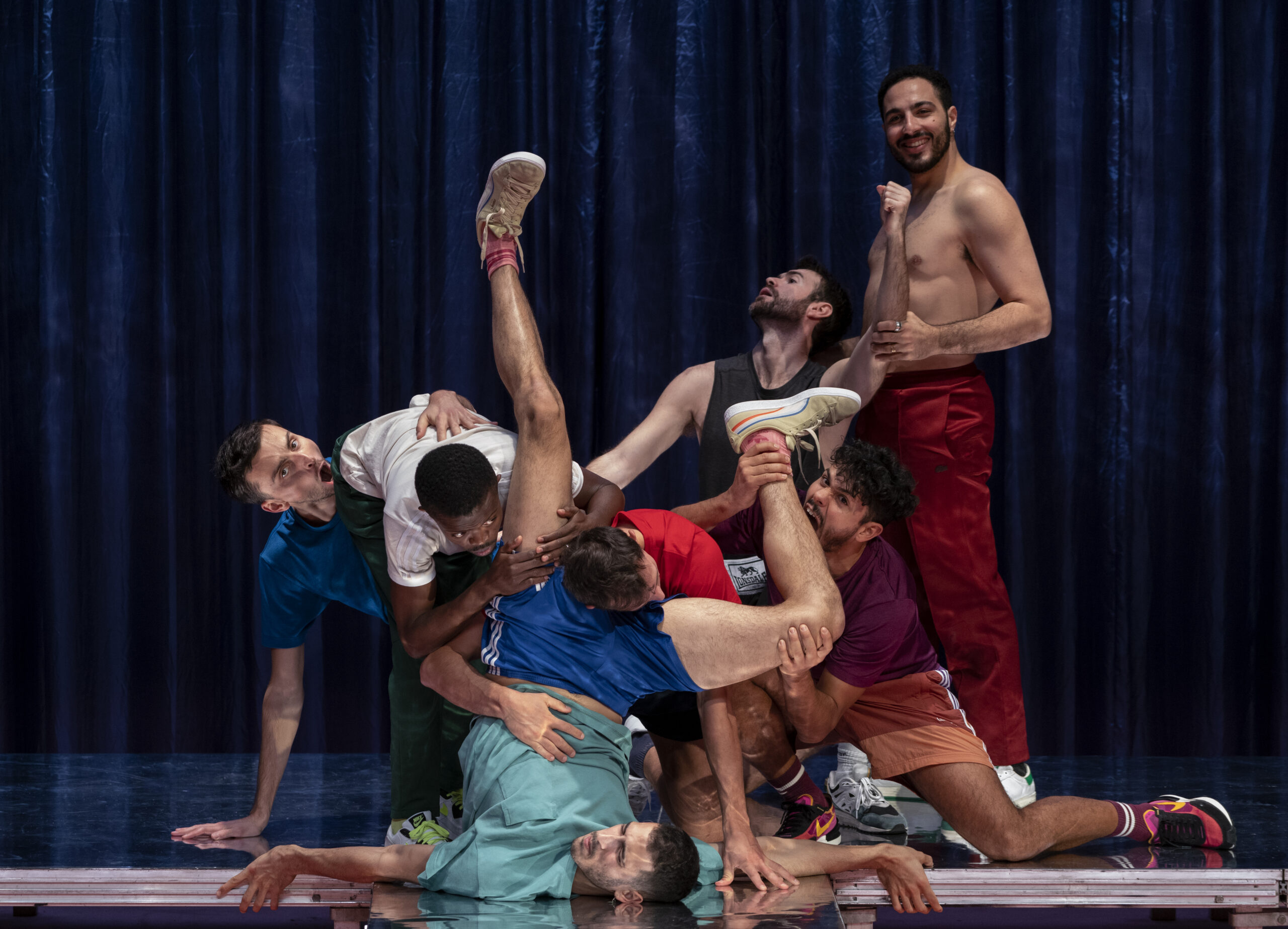 Venus du hip-hop, de la danse contemporaine, de la danse du salon, de la danse classique ou de la danse africaine, ces jeunes danseurs forment sur scène une seule communauté et miroitent des multiples facettes de la masculinité. Sous la forme d'une ronde à la Pina Bausch (dont la chorégraphe emprunte aussi avec audace quelques minutes du Sacre du printemps), Olivia Grandville croque tous les gestes typiques des hommes sur un standard de Frank Sinatra : jambes écartées, menton dans la main ou main devant l'entre-jambes…