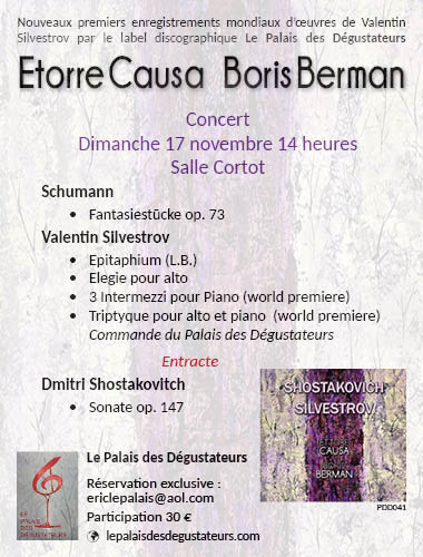 Annonce Ettore Causa et Boris Berman – Silvestrov et Chostakovitch – 17 novembre Salle Cortot