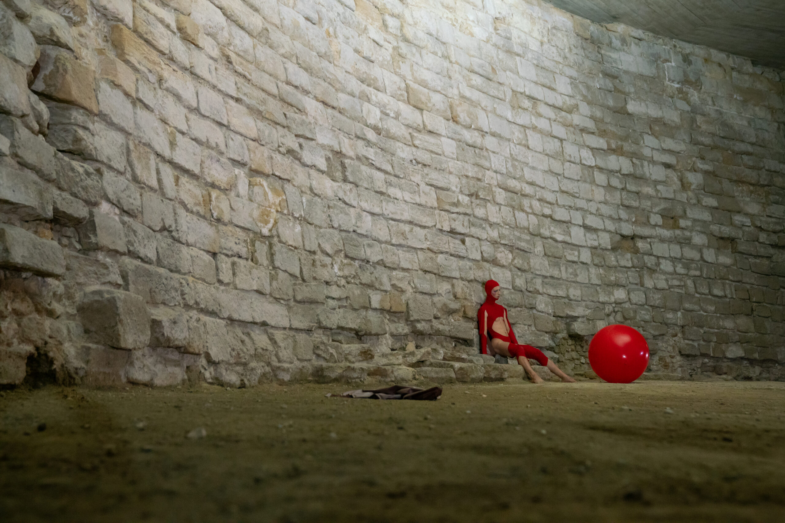 Si les premières figures de fou montrées dans l'exposition temporaire du musée du Louvre apparaissent dans les marges des incunables, François Chaignaud les inscrit aussi sur les bordures et les interstices des pierres de taille de l'ancien château fort. Niché dans un soupirail ou juché sur une corniche, le fou chante ou se mire dans une occupation égotique. Le danseur et chorégraphe a choisi d'occuper l'espace et de créer un fil rouge en utilisant des ballons ou d'autres accessoires. Au-delà du repère qui guide la déambulation, il en résulte une impression de légèreté et de fantaisie. La scénographie intègre de légers miroirs disposés en hauteur, une installation gonflable d'un rose tendre ou de drôles d'engins vibrant à la surface de l'eau, citation malicieuse de la dimension érotique de la figure du fou, évoquée dans l'exposition.