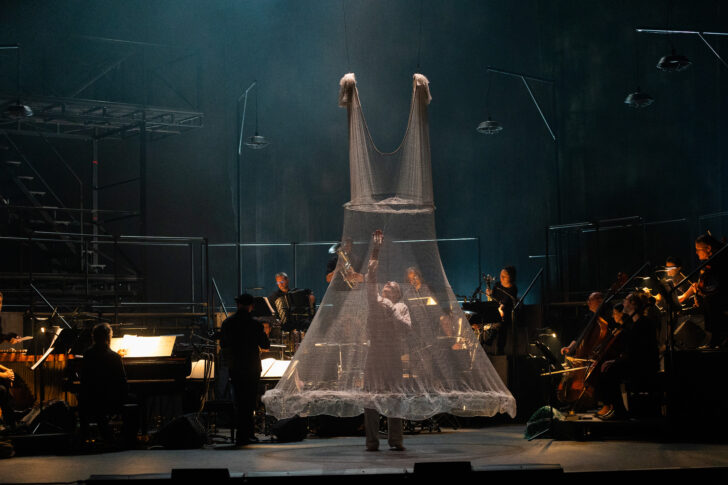 Restent des scènes splendides, belles trouvailles esthétiques, comme, au tout début du spectacle, la visite de la tombe de Chris, cinquante ans plus tard, à la lumière d'une lampe-torche, sur fond de légende bretonne, ou encore la grande robe suspendue dans les airs à la manière d'une marionnette, au moment où Chris retrouve la mémoire sur ce qui lui est arrivé. Ces images qui restent en tête au sortir de l'opéra.