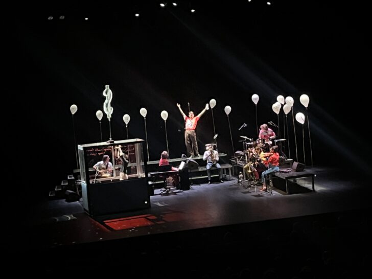 Sans doute pour contenir l'extravagance de cette femme mégalomane, aussi néfaste qu'influente, le metteur en scène Mathieu Bauer a placé la comédienne et chanteuse Emma Liégeois qui l'incarne dans une cage de verre au-dessus de laquelle est suspendu, brillant de tous ses feux, un dollar. Derrière la vitre, l'héroïne peut, à l'envi, hurler ses slogans, livrer ses engouements spontanés, vanter la beauté des corps et libérer son trop plein d'euphorie en chantant à pleins poumons et en anglais, comme dans une comédie musicale. La vidéo, sous la cabine, fait passer des images et du texte qui alimente sa thèse. Les sept musiciens (l'Orchestre de spectacle de Montreuil), avec clavier, batterie, accordéon et guitare électrique, sont à cour et soutiennent continuellement le flux des paroles, une musique d'accompagnement au fil des humeurs de l'héroïne. Passe à un certain moment le Prélude de Lohengrin de Wagner sans qu'on en saisisse véritablement la raison. Si les musiciens sont censés opposer à l'ego surdimensionné du personnage l'idée du collectif, le « sonner ensemble » avec la musique de Sylvain Cartigny, l'œil et l'oreille du spectateur sont tout entier captivés par le jeu de cette ensorceleuse – Emma Liegeois est irrésistible et chante à merveille – qui met à l'œuvre son pouvoir de séduction et sa fascination pour le luxe. Arrogante et suffisante, elle bannit toute religion et repousse même l'amour : tomber amoureuse, pour elle, est un assujettissement à l'autre. « J'aime à dire : ce n'est pas moi qui vais mourir, c'est le monde qui prendra fin », une phrase qui nourrit son ambition démesurée et qu'elle va répéter avec délice.