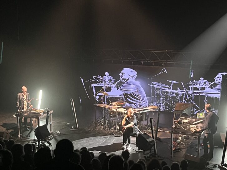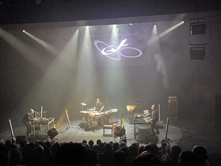 Des mots se lisent sur l'écran, dans un jeu de lettres dansantes constamment reformées qui met l'œil en alerte avant le début du concert. Ils sont trois sur le plateau et un quatrième co-équipier dans l'ombre, le compositeur et artiste visuel Wilfried Wendling qui manie en live sa caméra et distille ses lumières pendant la performance.