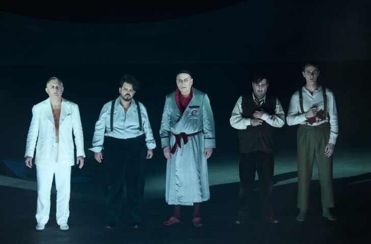 Toulouse. Théâtre du Capitole. 24-XI-2024. Bruno Mantovani (né en 1974) : Voyage d’Automne, opéra en trois actes sur un livret de Dorian Astor. Mise en scène : Marie Lambert-Le Bihan. Décors : Emanuele Sinisi. Costumes : Haria Ariemme. Lumières et vidéo : Yaron Abulafia. Avec : Pierre-Yves Pruvot, Marcel Jouhandeau ; Stephan Genz, Gerhard Heller ; Emiliano Gonzalez Toro, Ramon Fernandez ; Vincent Le Texier ; Jacques Chardonne ; Yann Beuron, Pierre Drieu La Rochelle ; Jean-Christophe Lanièce, Robert Brasillach ; William Shelton, Wolfgang Göbst ; Enguerrand De Hys, Hans Baumann ; Gabrielle Philiponet, La Songeuse. Chœur de l’Opéra national du Capitole (chef de chœur : Gabriel Bourgoin). Orchestre national du Capitole, direction musicale : Pascal Rophé