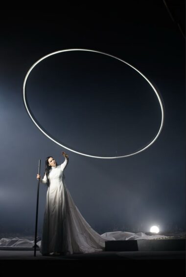 Compositeur et librettiste s'unissent particulièrement dans les moments a cappella renforcée par une direction d'acteurs soulignant le déni des héros hébétés face à l'infamie de la mort, au moment par exemple où la réalité saute aux yeux des collaborateurs qui assistent à une fusillade. Ils s'unissent encore pour faire apparaître, tel un rêve éveillé, la seule voix féminine de cet opéra, (La Songeuse), délivrant avec sa voix de soprano la poésie de Gertrude Kolmar, gazée à Auschwitz en 1943. Le lied déployé par la chanteuse, tout comme ses deux autres interventions, se révèle un véritable moment de respiration dans cette ambiance étouffante, telle une vive lumière au fond d'un long tunnel. Sur des échasses, la soprano maintient avec puissance et assise, une humanité hagarde mais vivante.
