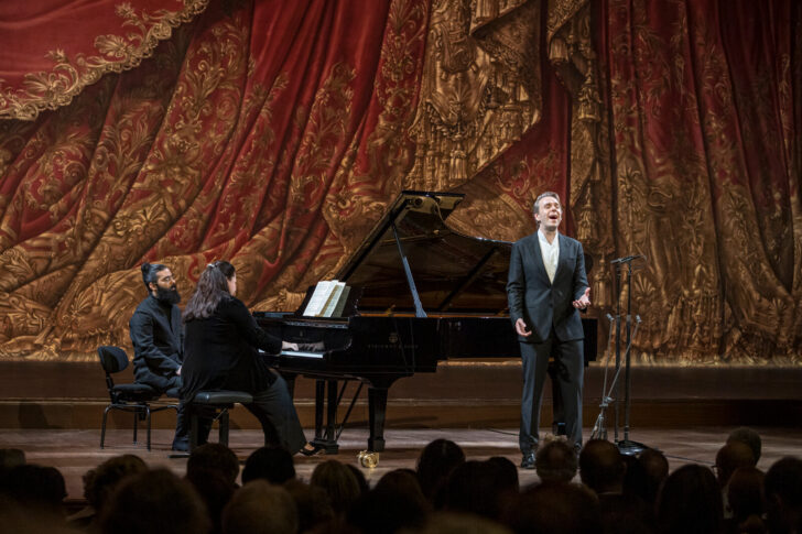 Paris. Palais Garnier. 24-XI-2024. Charles Gounod (1818-1893) : L’Absent. Reynaldo Hahn (1874-1947) : L’heure exquise. Ernest Chausson (1855-1899) : Poème de l’amour et de la mer. Hector Berlioz (1803-1869) : Les nuits d’été. Henri Duparc (1848-1933) : L’invitation au voyage, Chanson triste, Phidylé. Joseph Kosma (1905-1969) : Les feuilles mortes. Charles Trénet (1913-2000) : Douce France. Jacques Brel (1929-1978) : Quand on n’a que l’amour. Benjamin Bernheim, ténor ; Carrie-Ann Matheson, piano