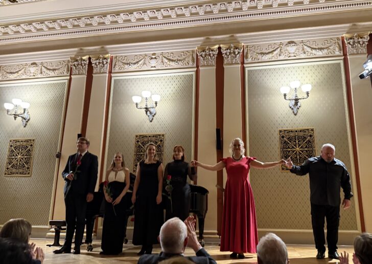 Sur la scène en largeur de la salle de musique de chambre du Rudolfinum, Jan Dušek entre d'abord seul pour se placer face au piano Fazioli au couvercle grand ouvert. Son interprétation colorée s'inscrit dans la pure tradition tchèque de la pièce V mlhách (Dans les Brumes) de Leoš Janáček, avec de gros contrastes, mais un volume sonore pas toujours bien maîtrisé par rapport à la taille et à l'acoustique de la salle.
