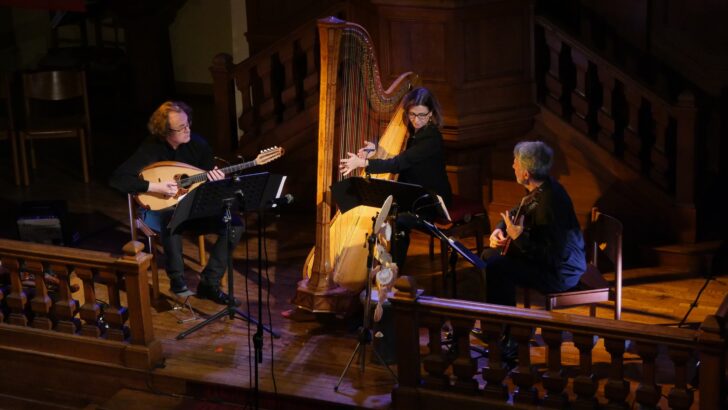 Le trio termine le concert avec Luninescenza, une perle écrite pour guitare, harpe et mandoline par Huber en 1992, avant même l'existence du Trio Polycordes. L'écriture procède par petits éclats successifs, mélodie de timbres très économe associée aux chocs mats sur la caisse des instruments, qui contraste avec les courtes séquences de brouillage microtonal d'une couleur inédite : « piccola musica enigmistica per Brian Ferneyhough », sous-titre le compositeur, alliant complexité et étrange beauté.
