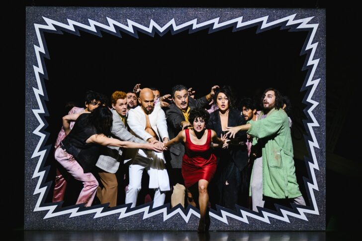 Même si, sous la baguette joueuse et alerte de Giacomo Sagripanti, semblent s'amuser autant que les spectateurs des chanteurs sûrs de leurs effets, condamnés à prendre la pose, aux arrêts sur image auxquels les contraint (presque trois heures durant !) l'opéra-photo de Laurent Pelly, on mesure l'impressionnante performance d'un tel travail et le temps conséquent de répétition pour parvenir à un tel résultat : on partage donc l'inquiétude des équipes tant musicales que techniques de l'Opéra de Lyon venues avant le lever de rideau faire part à la rampe de leur inquiétude face à un avenir où les moyens culturels seraient appelés au ratiocinage. Pelly a le don de galvaniser et de mettre en valeur le chœur, dont les interventions n'en prennent une fois encore que davantage de relief autour de solistes particulièrement réjouissants. La Fiorilla pleine de caractère de Sara Blanch et le Turc d'Adrian Sâmpetrean captent regards et oreilles de bout en bout ; elle, faisant montre dans son grand air final de moyens assez conséquents (Le Turc en Italie arbore cette spécificité de réserver ses grands airs pour la fin) ; lui, joliment extraverti par son statut de fantasme surgi d'un imaginaire débridé. On est ravi de retrouver Alasdair Kent, son Narciso, en dépit de quelques aigus serrés intelligemment négociés, portant sur ses frêles épaules le lourd tribut du ténorino rossinien. Quant au barbon du même sérail, Don Geronimo, il est assuré avec une belle vis comica et une voix adéquate par Renato Girolami. Après Wozzeck, le Lyon Opéra Studio braque à nouveau les projecteurs sur les prometteurs Jenny Anne Flory en Zaida, et Filipp Varik en Albazar. On n'oublie pas le Prosdocimo assez grandiose de Florian Sempey, lâché de tous à la dernière image qui le montre en rédacteur définitivement débordé par sa création. Le poète n'était finalement qu'un faiseur de roman-photo.