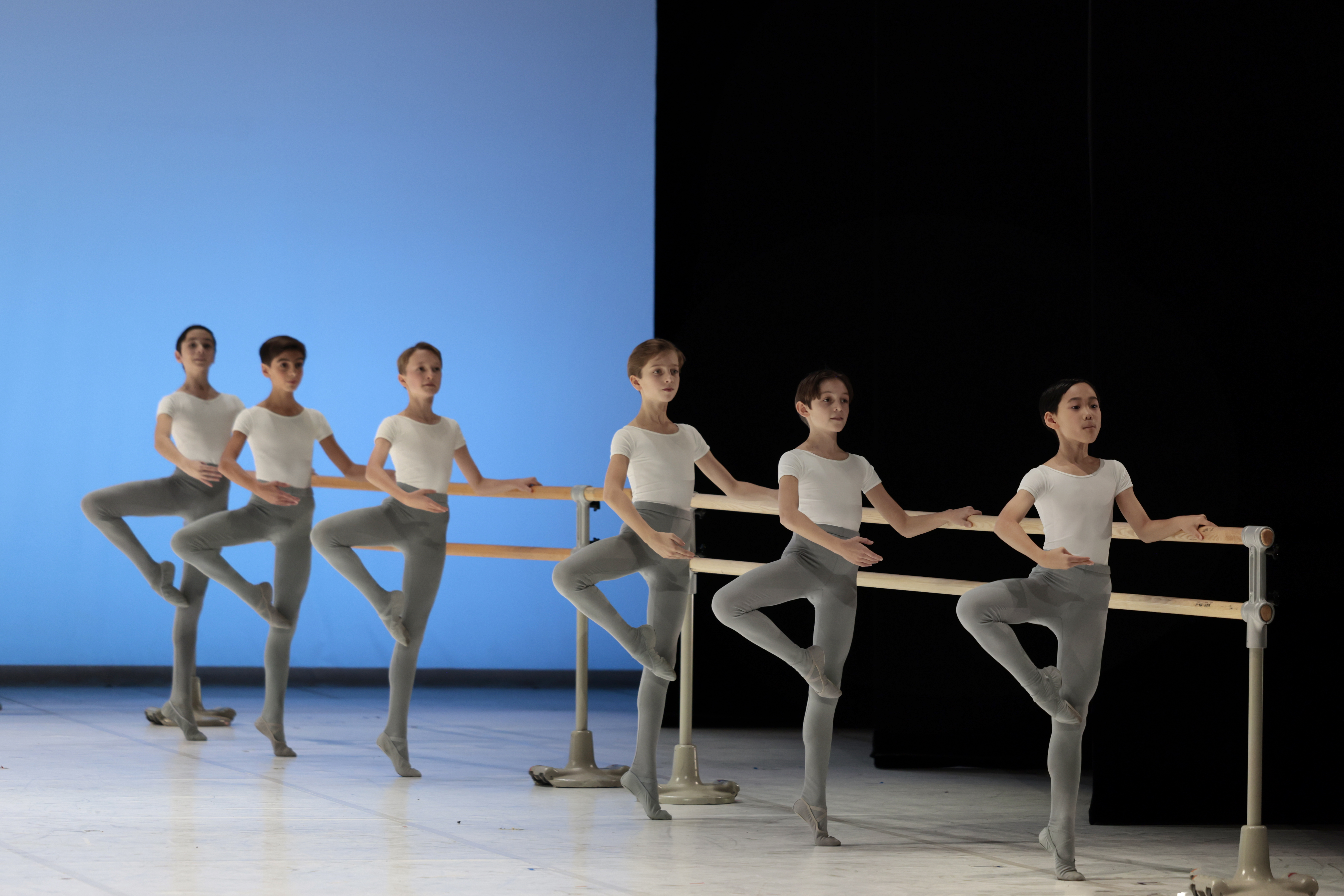 Les démonstrations débutent traditionnellement par la classe des garçons de 6e division. Les plus jeunes élèves, sous la houlette de leur professeur, le danseur Etoile Stéphane Bullion et accompagnés par Yuko Tsuchiya, nous offrent un panel d'exercices à la barre avant une série de dégagés, pirouettes et exercices de changements de pied au milieu. Dès leurs plus jeunes années, les élèves sont ainsi formés au style de l'école française avec une grande attention portée au travail du bas de jambe et à la propreté du travail comme en témoigne cette série d'exercices. C'est la première fois que ces huit tout jeunes garçons montent sur scène : le stress est palpable, les visages sont fermés, concentrés, mais les sourires apparaissent au moment des saluts de ces enfants, visiblement contents d'avoir réussi avec brio leurs démonstrations.