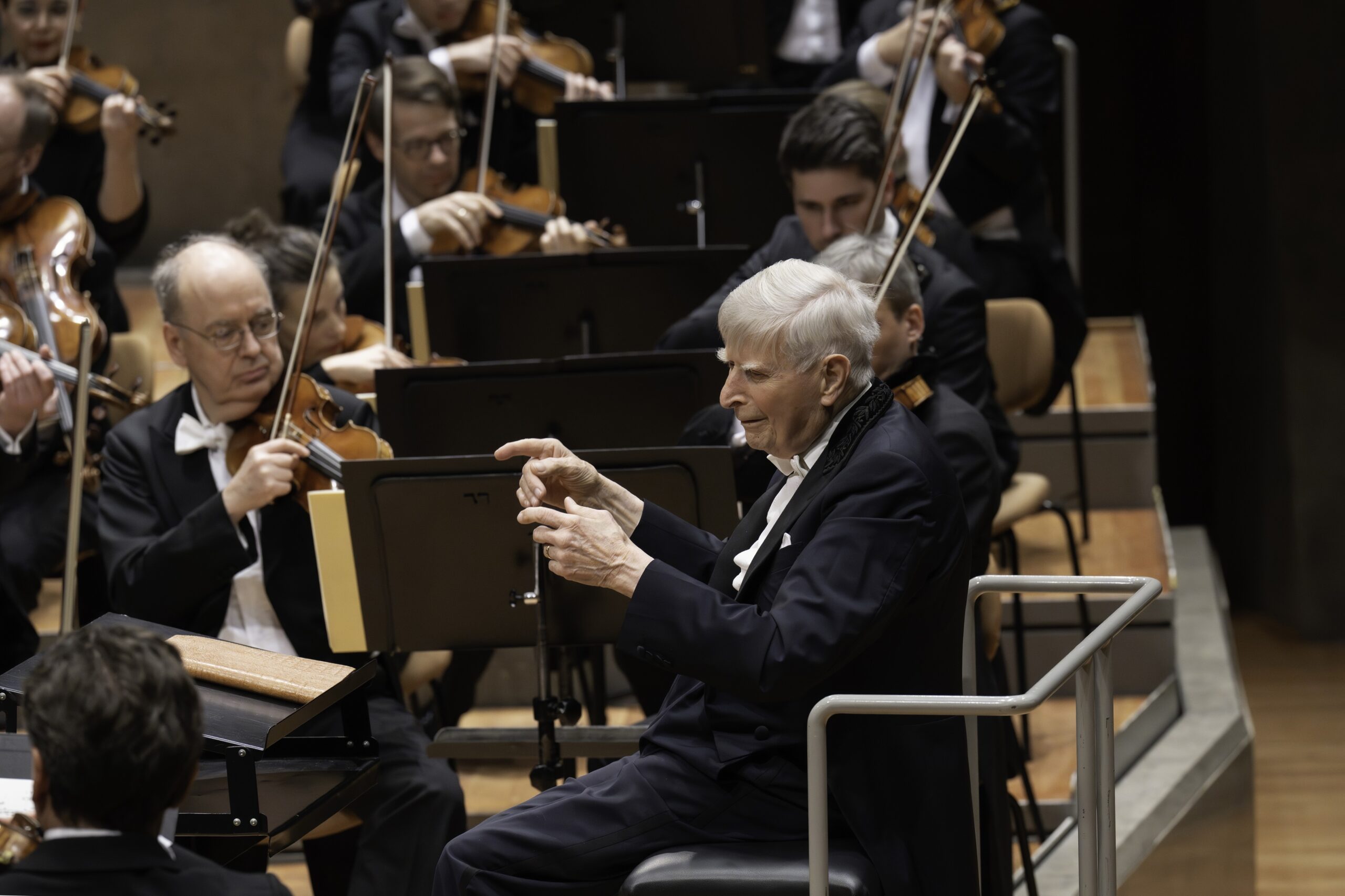 Désormais, chaque concert d'Herbert Blomstedt est précédé par une inquiétude : viendra-t-il ? Toujours plus fragile physiquement, il a montré au cours de l'année 2024 qu'il n'a rien perdu de sa puissance d'évocation musicale, que ce soit dans une indépassable Huitième symphonie de Bruckner à Paris ou pour un formidable programme choral à Salzbourg. Ce concert berlinois, et ce n'est pas le moins impressionnant de son parcours, a lieu après une tournée en Asie, et quelques semaines avant une tournée aux États-Unis. Le programme de ce soir n'en est pas moins généreux, avec le Concerto n° 20 de Mozart avant les trois mouvements achevés de la Neuvième symphonie de Bruckner : on n'est pas surpris, dans les derniers moments du concert, de percevoir une baisse du contrôle qui se traduit notamment par des cuivres beaucoup trop présents, mais cela n'obère en rien ce qui a précédé.