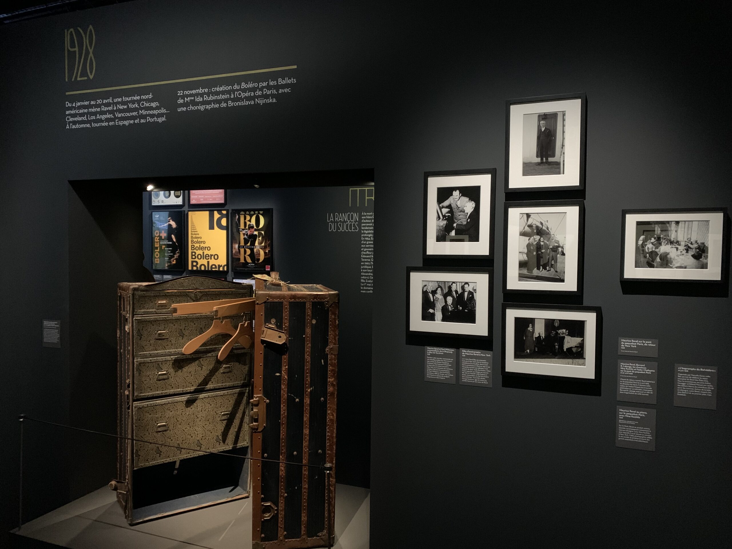 De nombreux documents retracent bien sûr l'histoire du Boléro, depuis la commande d'un ballet espagnol par la danseuse Ida Rubinstein jusqu'à sa création en 1928 à l'Opéra de Paris : la lettre manuscrite de Ravel qui donne les clés de sa composition, une reproduction de l'affiche de sa première représentation, mais aussi des maquettes de décors, des photos de répétitions d'époque, des dessins de costumes, et divers documents qui attestent de sa diffusion au-delà de la France. L'exposition présente à l'appui un portrait émouvant de l'homme Ravel, indissociable du compositeur, à travers les jalons de sa vie, depuis son enfance, ses origines familiales (nombreuses photographies et portraits de lui, de ses parents et de son frère), jusqu'à son environnement quotidien durant ses dix-sept dernières années dans sa maison à Montfort l'Amaury, dont nombre d'objets et de mobilier sont présents, comme son bureau sur lequel a été composé le Boléro.