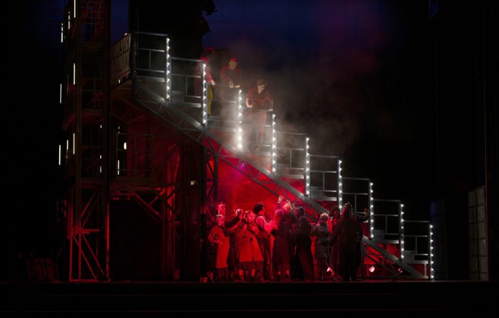 La tournette ! Personnage à part entière du spectacle, elle était carrément restée grippée à Paris. A Nice, elle avait été privée d'une de ses interventions. A , le mécanisme tel que prévu à l'origine (comme un lent travelling de cinéma) par Richard Brunel est enfin parfaitement huilé. A l'image de ce spectacle qui, également co-produit par l'Opéra de Lyon, devrait y faire prochainement le tabac qu'il mérite.