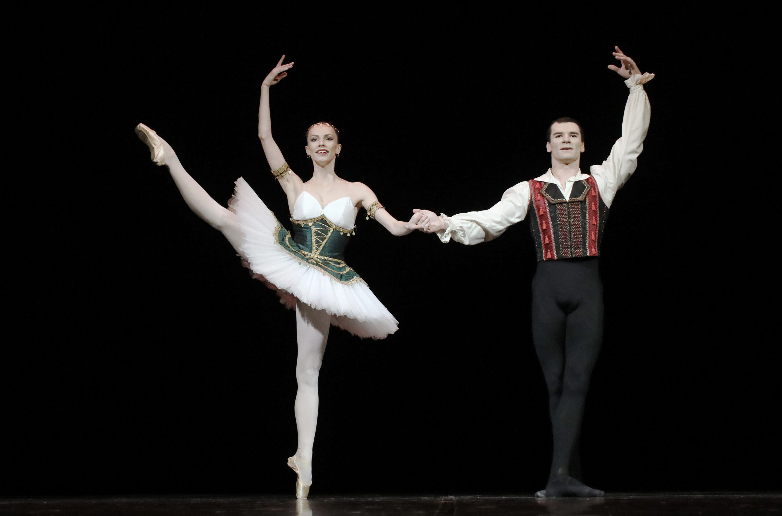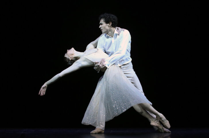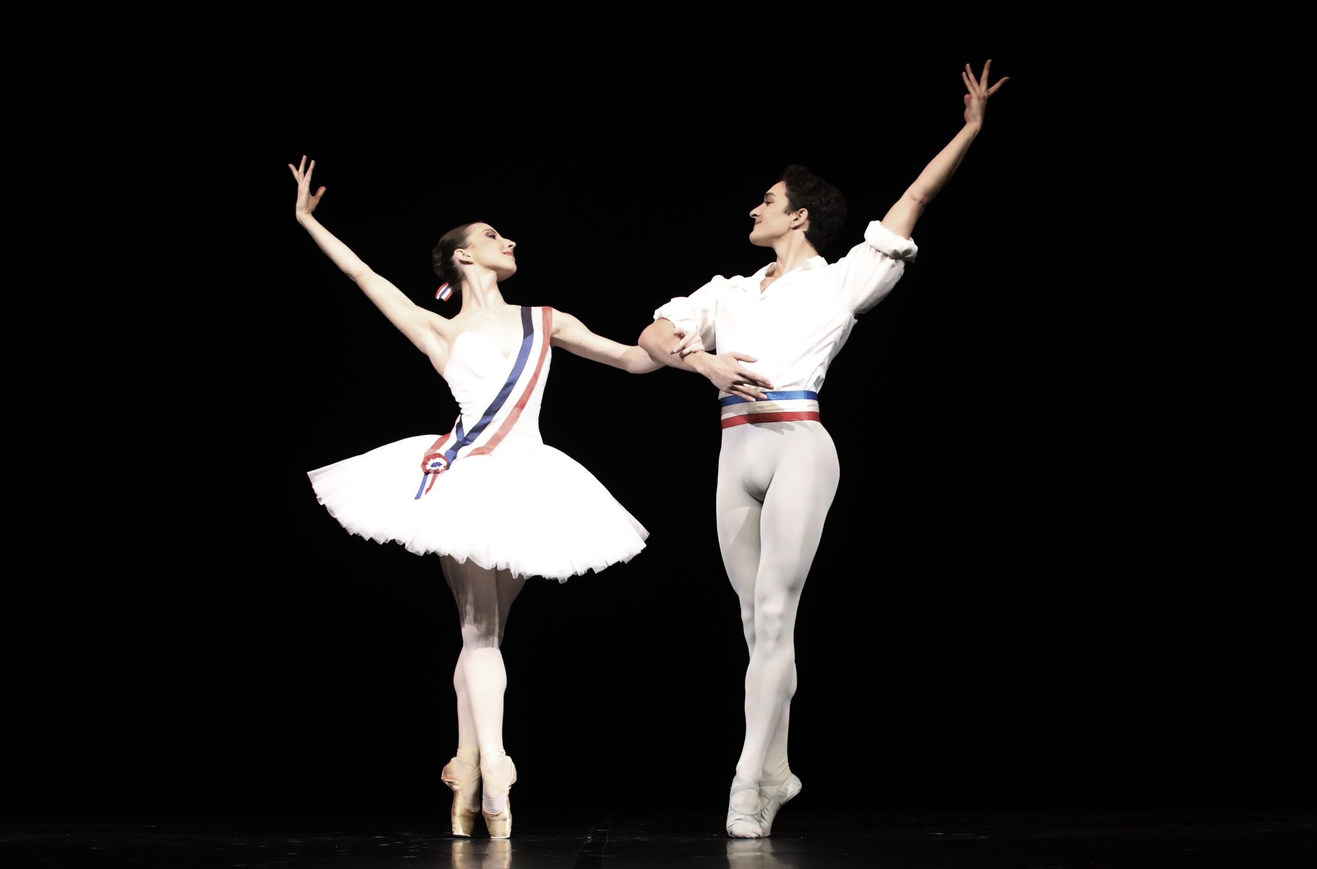 Peut-être aura-t'elle pu observer les autres danseurs à l'affiche de ce riche gala. Notamment ce couple brésilien formidable composé de Mayara Magri (principal du Royal Ballet) et de Victor Caixeta au parcours impressionnant (une ribambelle de prix internationaux, une formation à Berlin avant d'intégrer le Mariinsky qui le nomme soliste, et qu'il quitte au lendemain de l'invasion de l'Ukraine par la Russie pour rejoindre alors le Het National Ballet d'Amsterdam). Ces destins qui traversent le monde pour réussir font preuve d'une évidente maturité. Surtout, dans Coppélia, où ils nous montrent ce que l'on voit rarement : qu'un pas de deux, comme disait Noureev, « est un dialogue amoureux. Si l'un des deux est muet, il ne se passe rien. » Or là, en cinq minutes, ils nous dévoilent toute une histoire, une passion, la joie d'un garçon et d'une fille qui se retrouvent. Cela paraît simple, mais s'avère en réalité le fruit d'un très gros travail minutieux de réflexion sur ce que doit dire le geste. Il se dégage de ce couple une joie incommensurable et magnifique. Mayara Magri danse ensuite « Tl&Fro » un duo sur du Respighi chorégraphié par Matthew Ball, son éminent collègue Etoile du Royal Ballet de Londres, danseur habité et doué de surcroît pour chorégraphier. Il tisse ici un duo composé de très jolis portés où la danseuse glisse au sol sans même que l'on comprenne comment, sous les applaudissements d'un public bon enfant mais connaisseur.