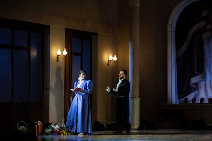 Pas besoin de trois voix différentes (comme il est coutume de le penser) pour la Violetta de Maria Novella Malfatti, impressionnante révélation, dont la seule voix et rien d'autre semble parfaitement aguerrie face aux nombreux Everest du rôle : grave très nourri qui étonne d'abord avant de surprendre quand il fait place à des aigus filés, puissance et souffle (le contre-mi bémol facultatif de Sempre libera de surcroît longuement tenu). Silhouette longiligne, visage oblong, jeu investi convoquent même le souvenir de Maria Callas. Peut-être dessillée, en tous cas brisée, cette Traviata expirera comme la plupart de ses devancières, mais ici devant une fantomatique rangée d'hommes en chapeau haut-de-forme (des clones de Germont Père ?) revenus applaudir sa mort comme ils l'avaient déjà fait sur le Prélude de l'Acte I.