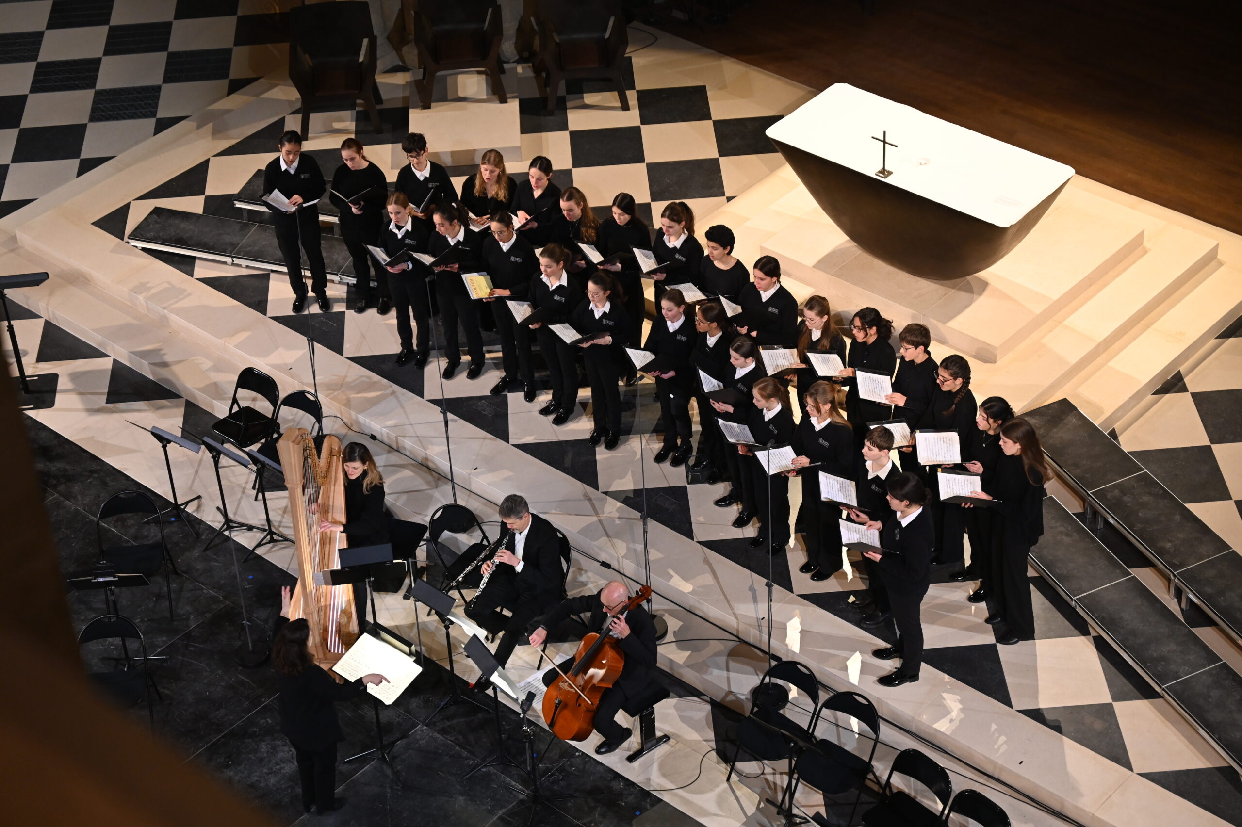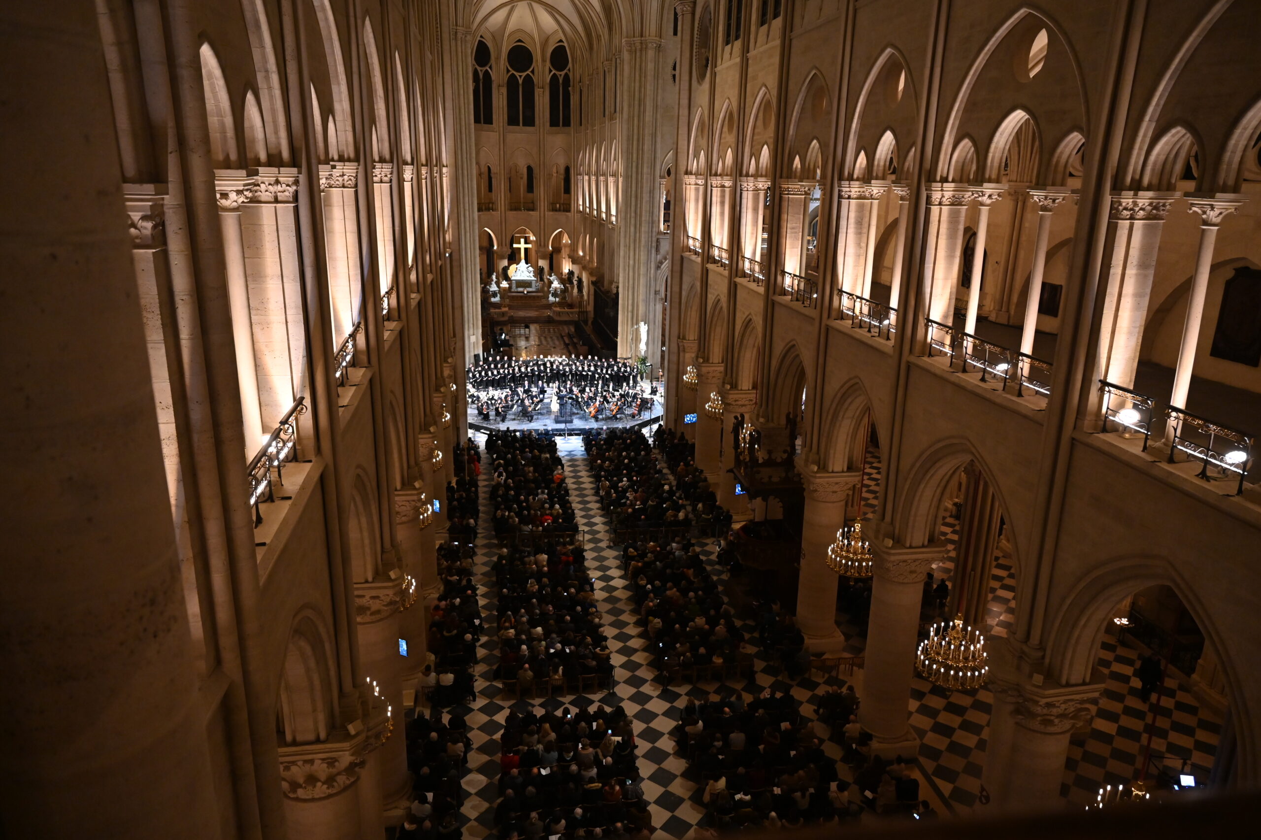 Paris. Notre Dame de Paris. 14-I-2025. André Jolivet (1905-1974) : Suite liturgique pour chœur, cor anglais (ou hautbois), violoncelle et harpe. Gabriel Fauré (1845-1924) Requiem opus 48 (version pour soli, chœur et orchestre de 1900). Jean-Christophe Lanièce (baryton), Aurélien Segarra (soprano), David Walter (hautbois, cor anglais), Jean-Marie Trotereau (violoncelle), Valeria Kafelnikov (harpe), Maîtrise Notre-Dame de Paris, direction : Émilie Fleury ; Orchestre national Auvergne Rhône-Alpes, direction : Henri Chalet